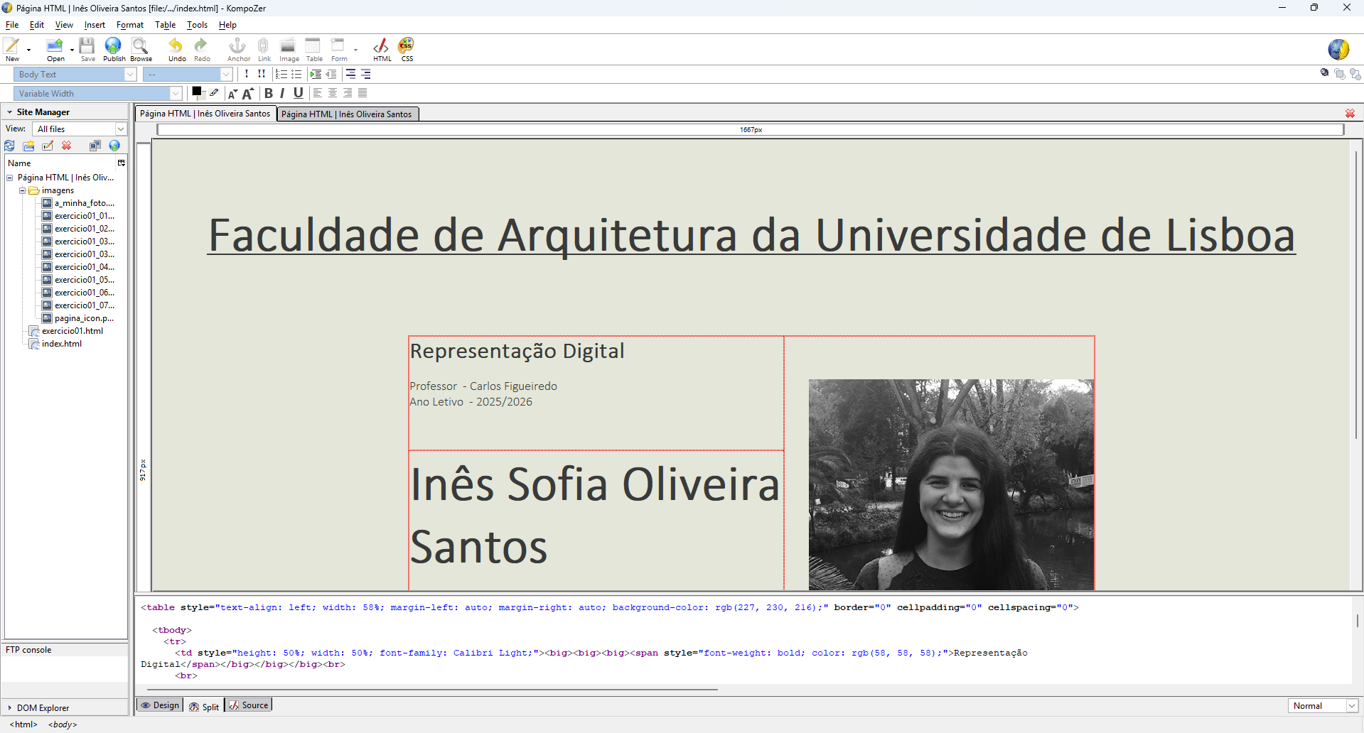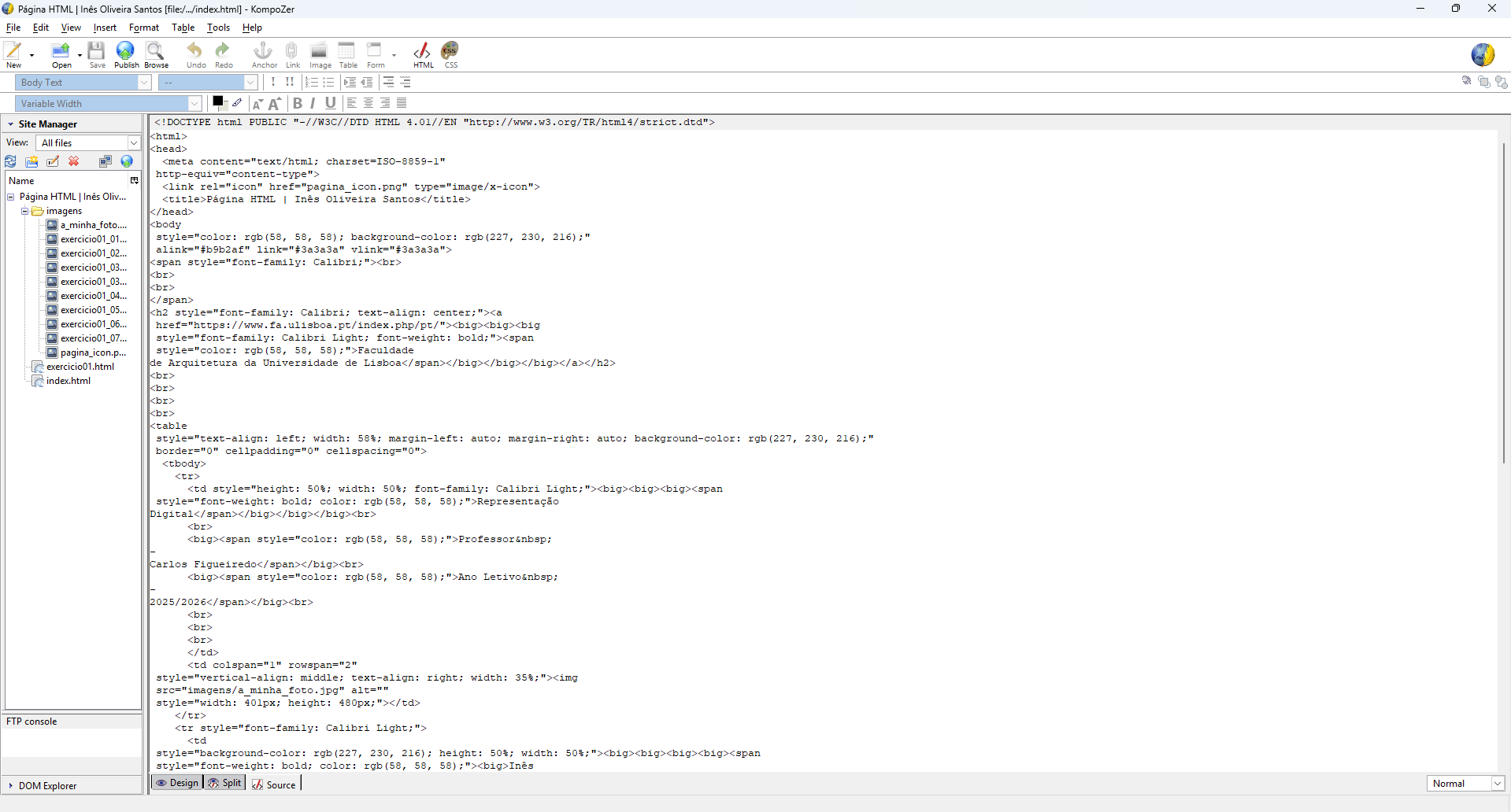 Para criar páginas HTML, pode-se utilizar um editor HTML WYSIWYG (What You See Is What You Get) que permite desenvolver sites e adicionar conteúdo sem exigir a escrita por código. Nesse sentido, o programa KompoZer oferece diferentes modos de visualização, sendo eles, a janela Source que mostra o código HTML completo correspondente à página, enquanto a janela Split