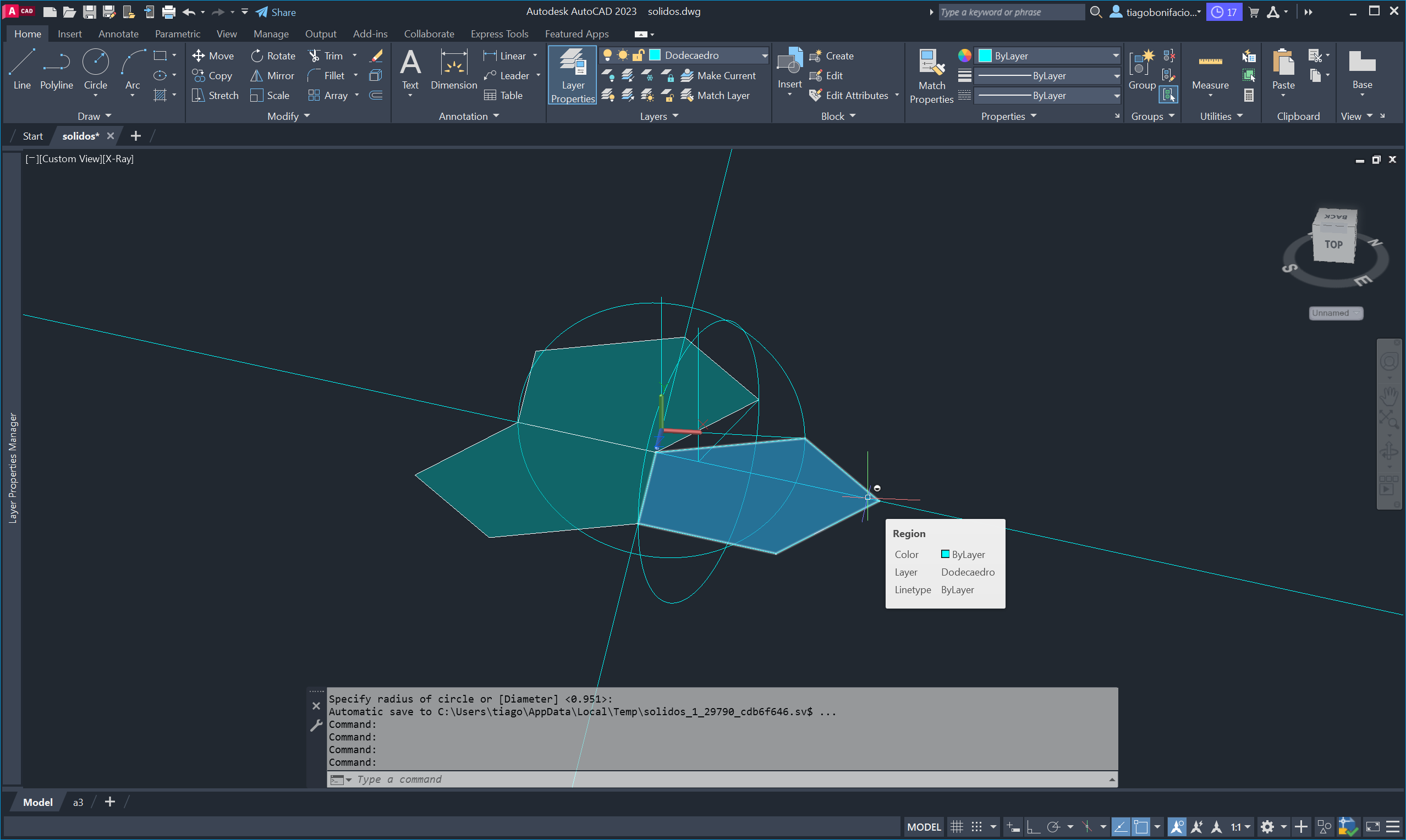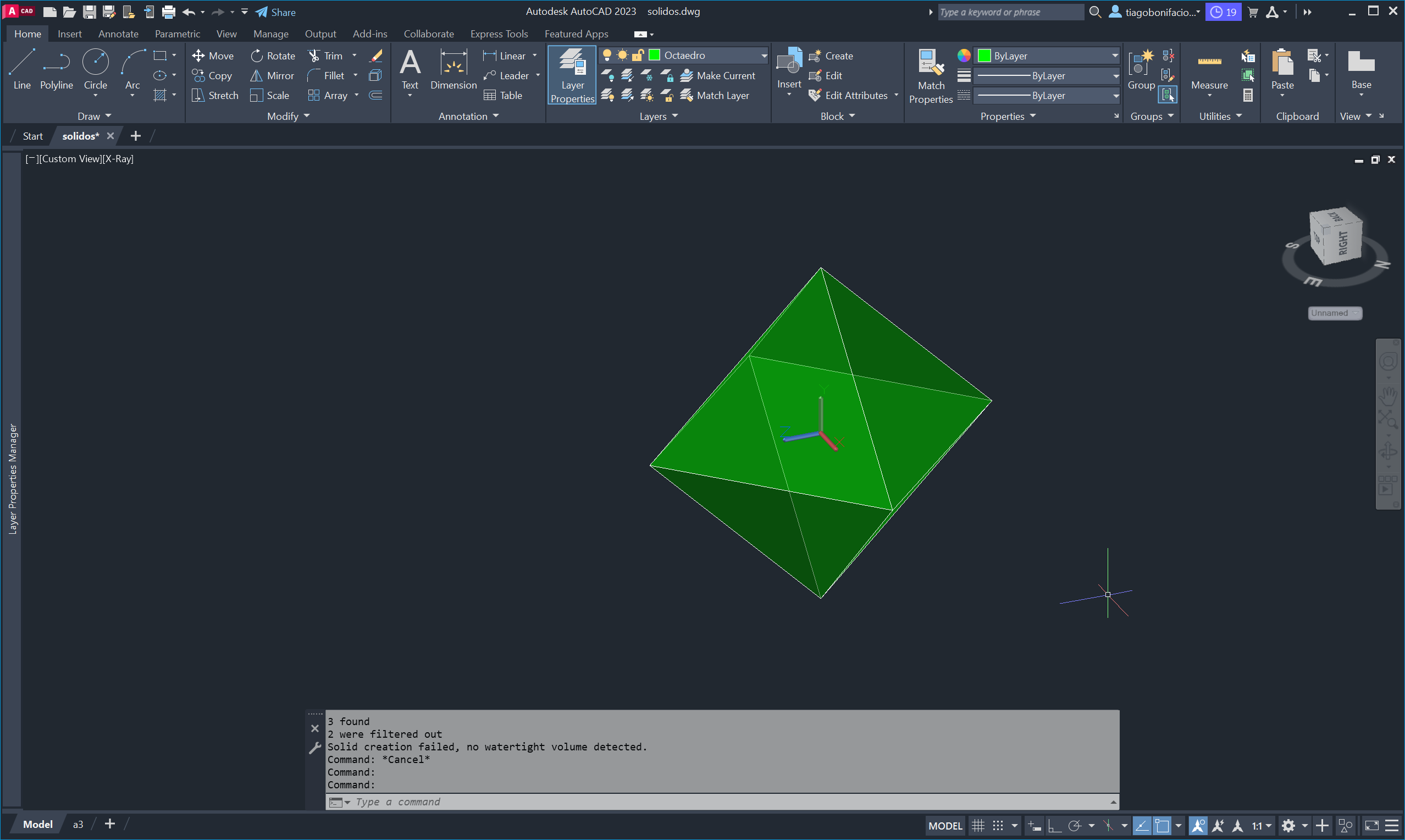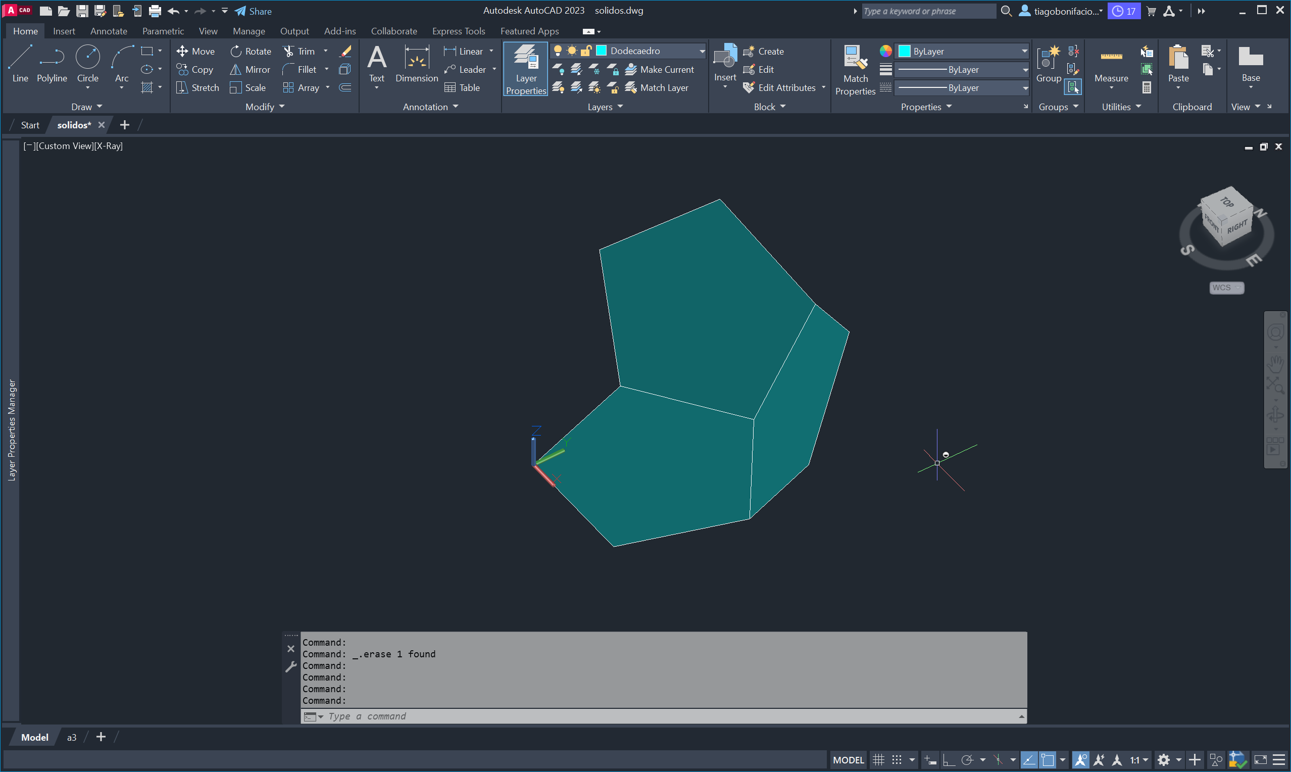 A aula iniciou com a limpeza do ambiente de trabalho através do comando LAYDEL para deletar layers desnecessários do layout. Posteriormente, focámo-nos na construção de sólidos platónicos, começando pela criação de um cubo, seguido de um tetraedro e finalmente um octaedro.