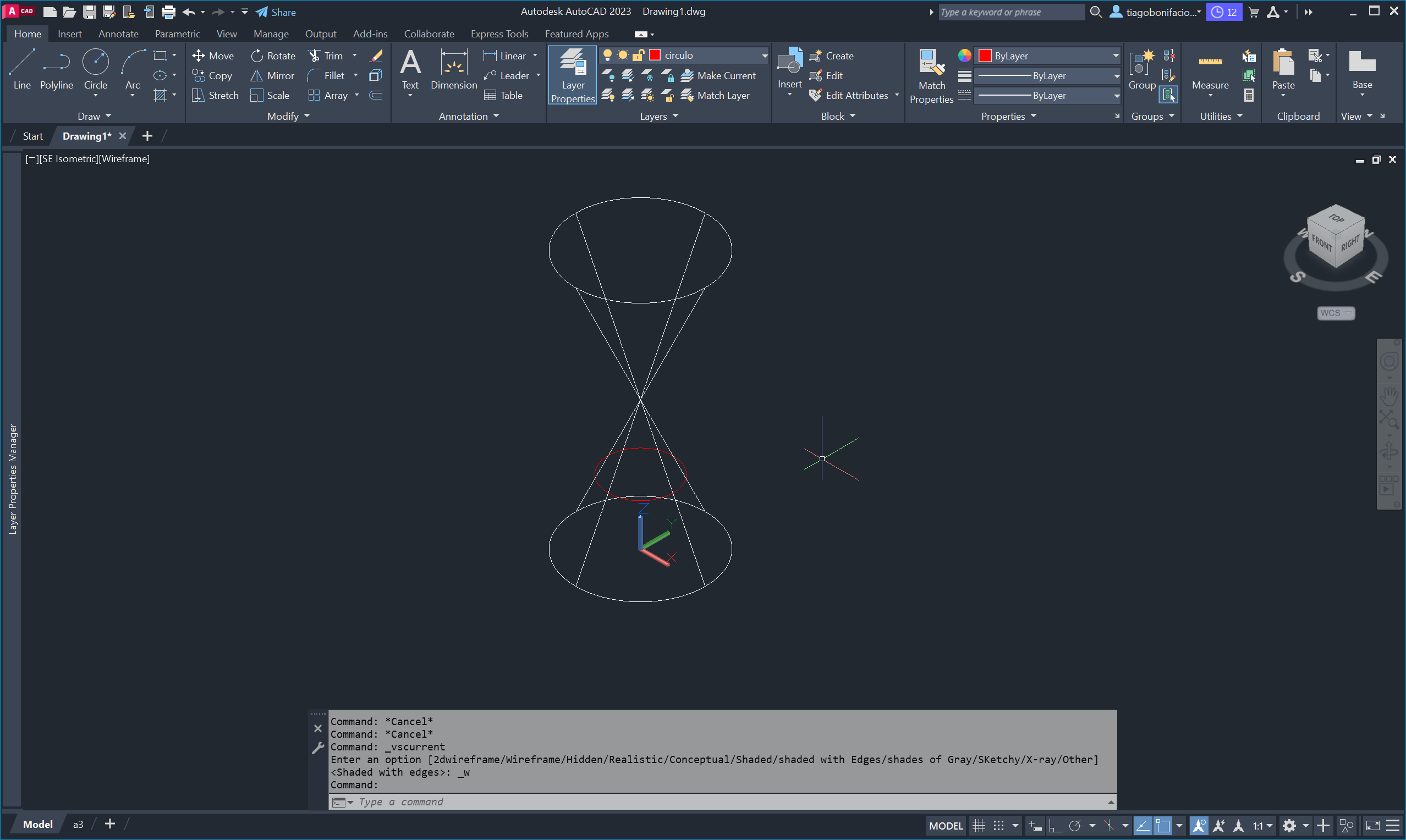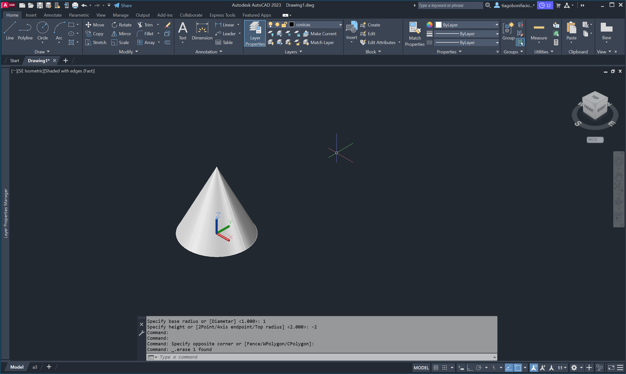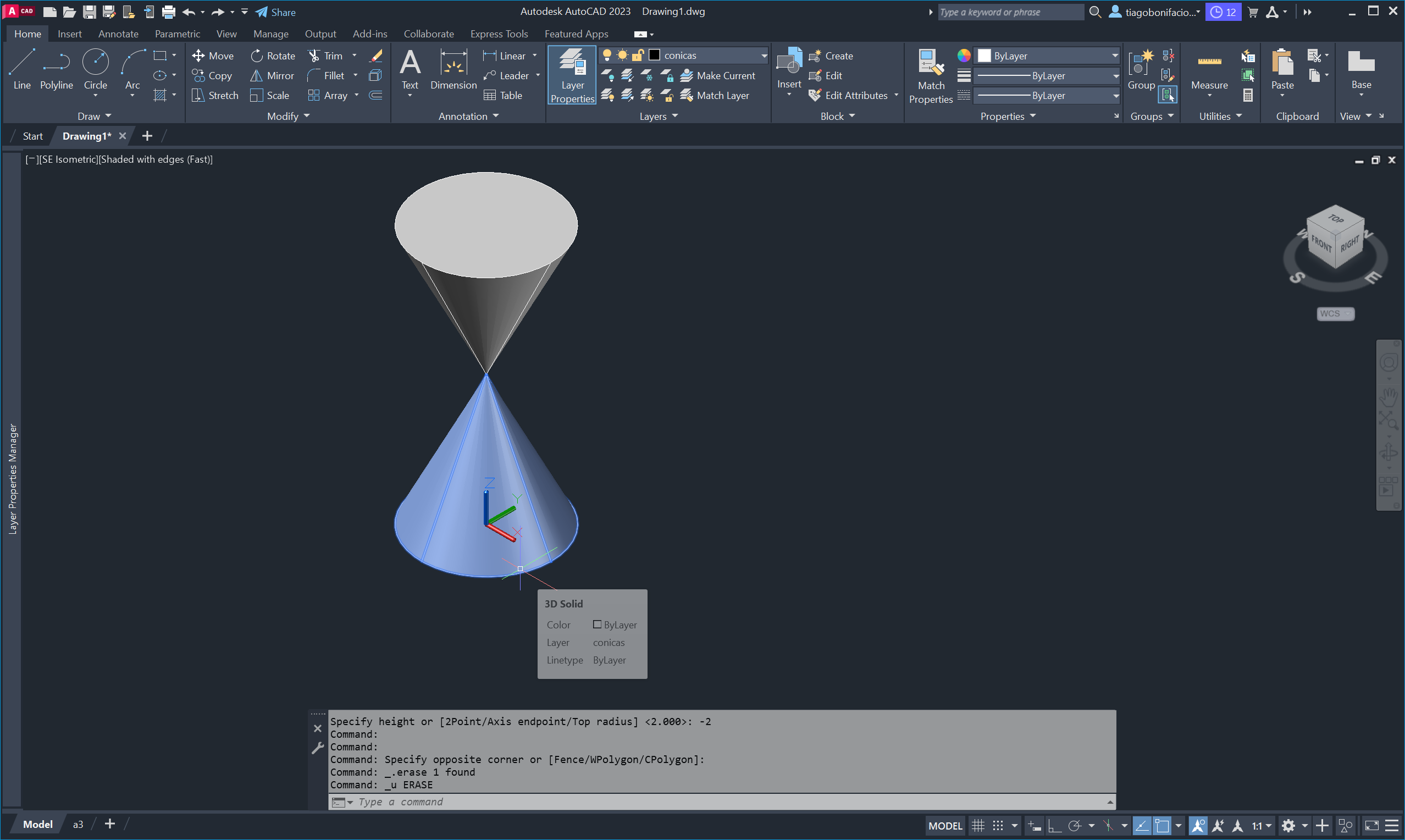 Utilizámos o comando CONE para criar o sólido, o comando UCS