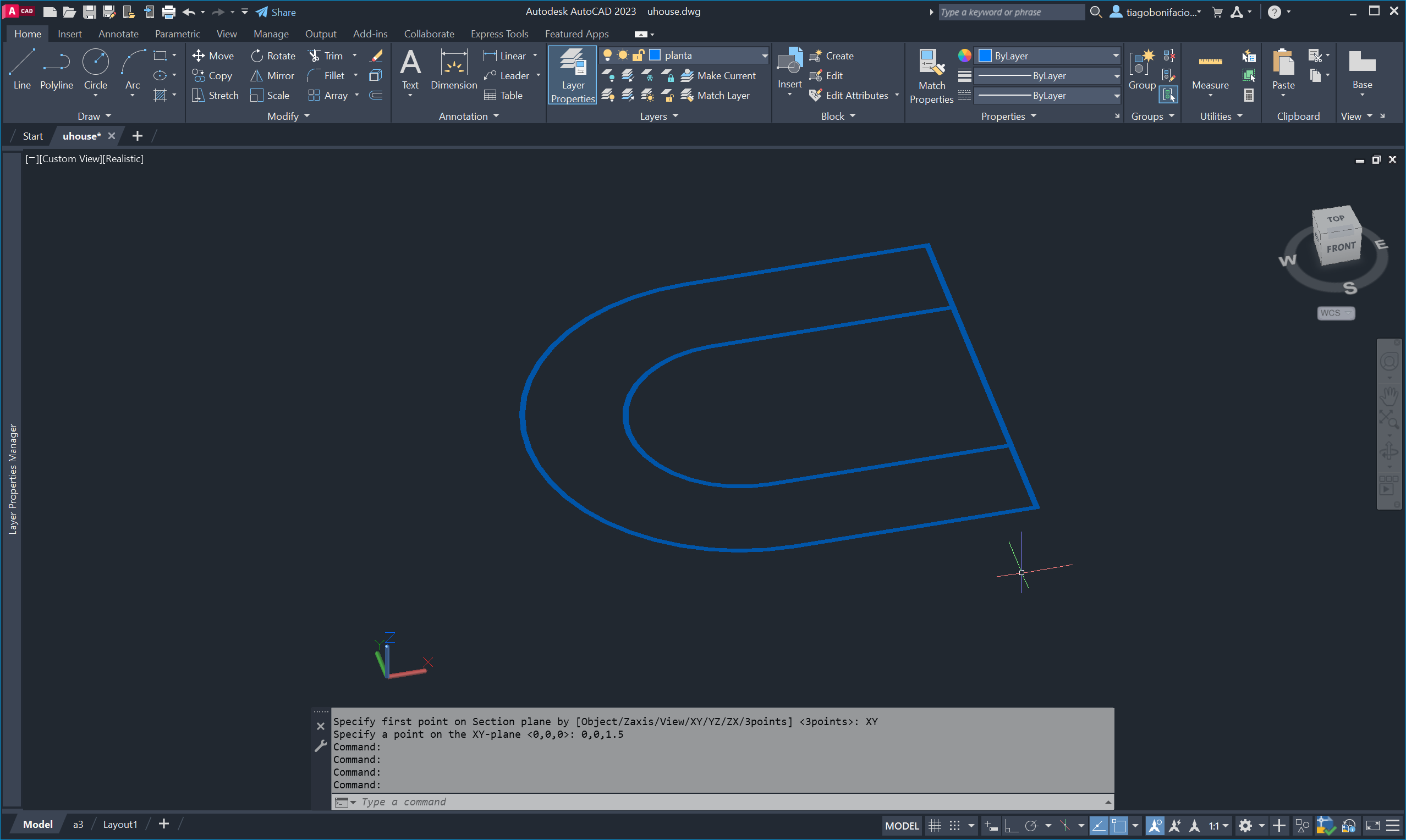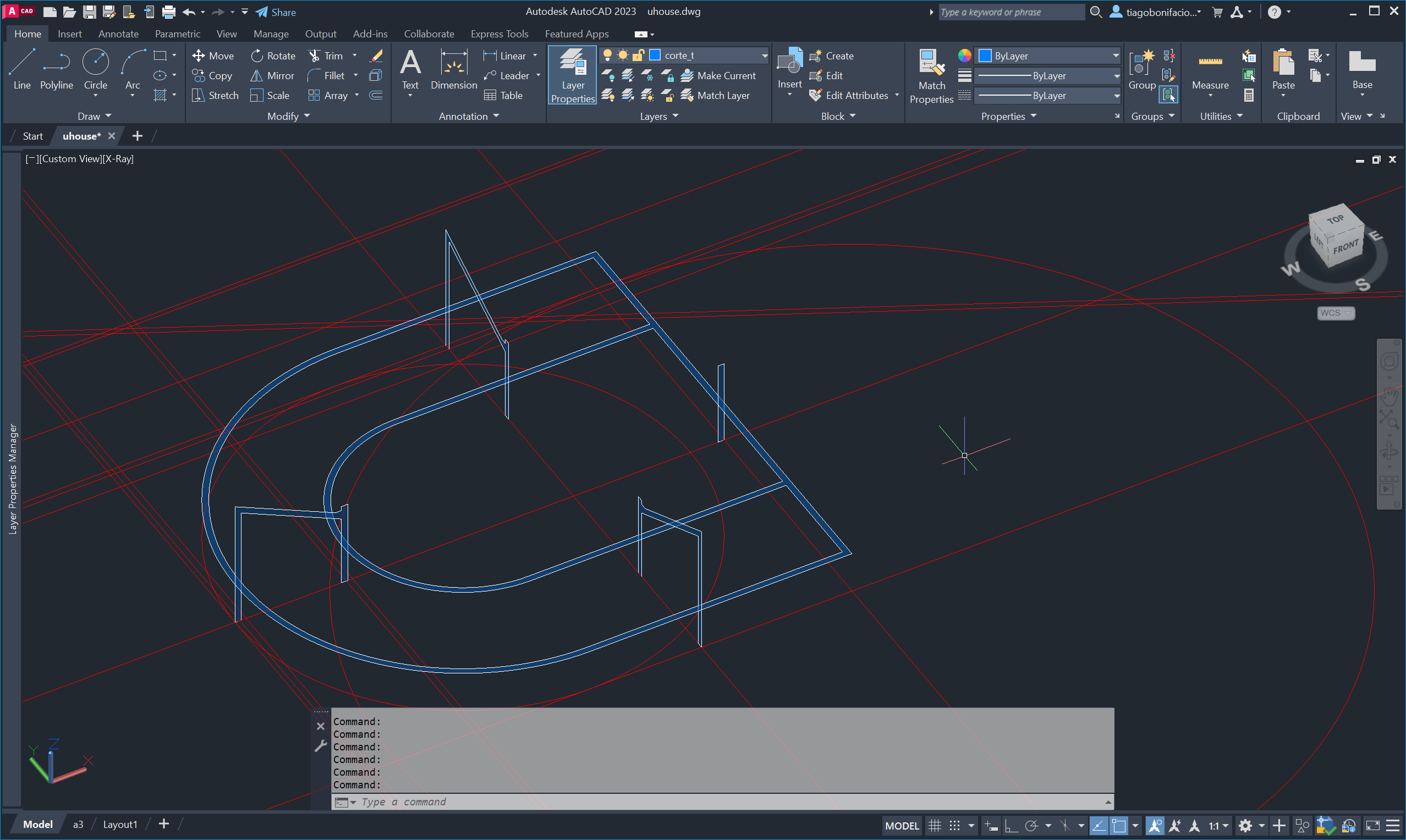 Finalizámos alterando novamente o UCS e utilizando o comando SECTION para gerar cortes seccionais do edifício.