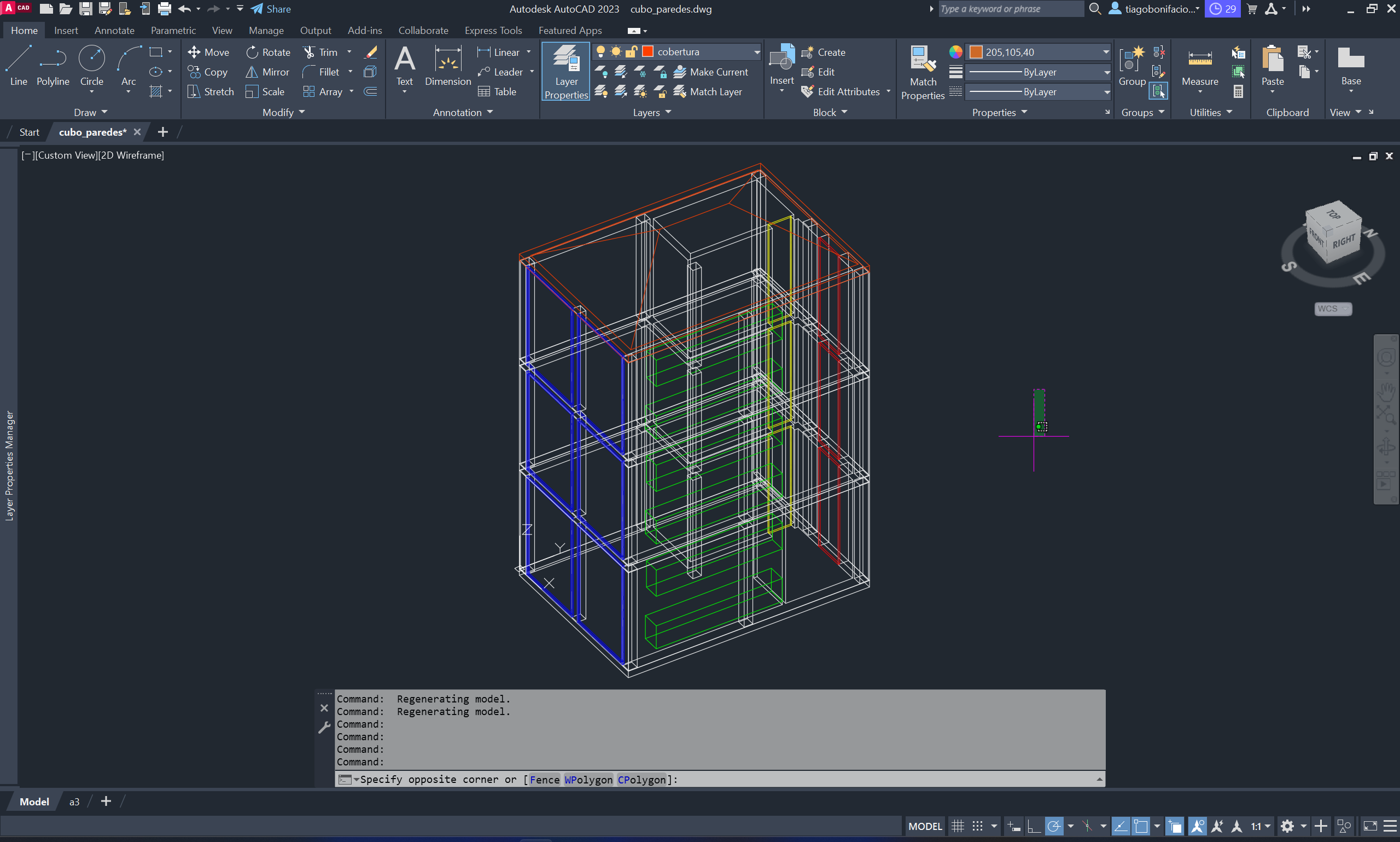 Aula de Representação Digital - AutoCAD (Agregação T0 e Escadas) Nesta aula integramos o módulo T0 ao projeto habitacional, ajustando as ligações espaciais e verificando as dimensões regulamentares. Desenvolvemos o desenho técnico das escadas, calculando o número de degraus, espelhos e cobertores segundo as normas de acessibilidade e conforto, e representamos cortes e plantas com a simbologia adequada. Finalizamos com a organização em layers e preparação dos elementos para impressão em escala.