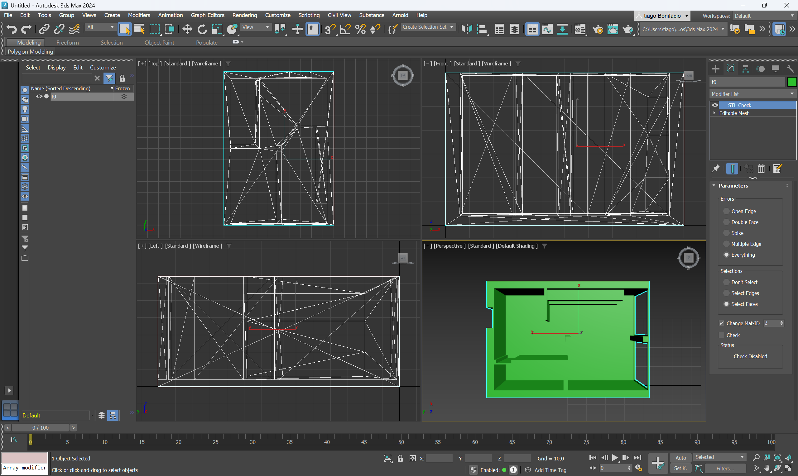 Nesta aula preparamos o ficheiro do T0 para impressão 3D, exportando o modelo em formato STL. Utilizamos o site https://www.viewstl.com/ para visualizar e validar o ficheiro, verificando possíveis erros de geometria, normas e espessuras. No 3D Max, conferimos a integridade do modelo, garantindo que estava correto e otimizado para enviar ao laboratório de prototipagem, assegurando uma impressão bem-sucedida.