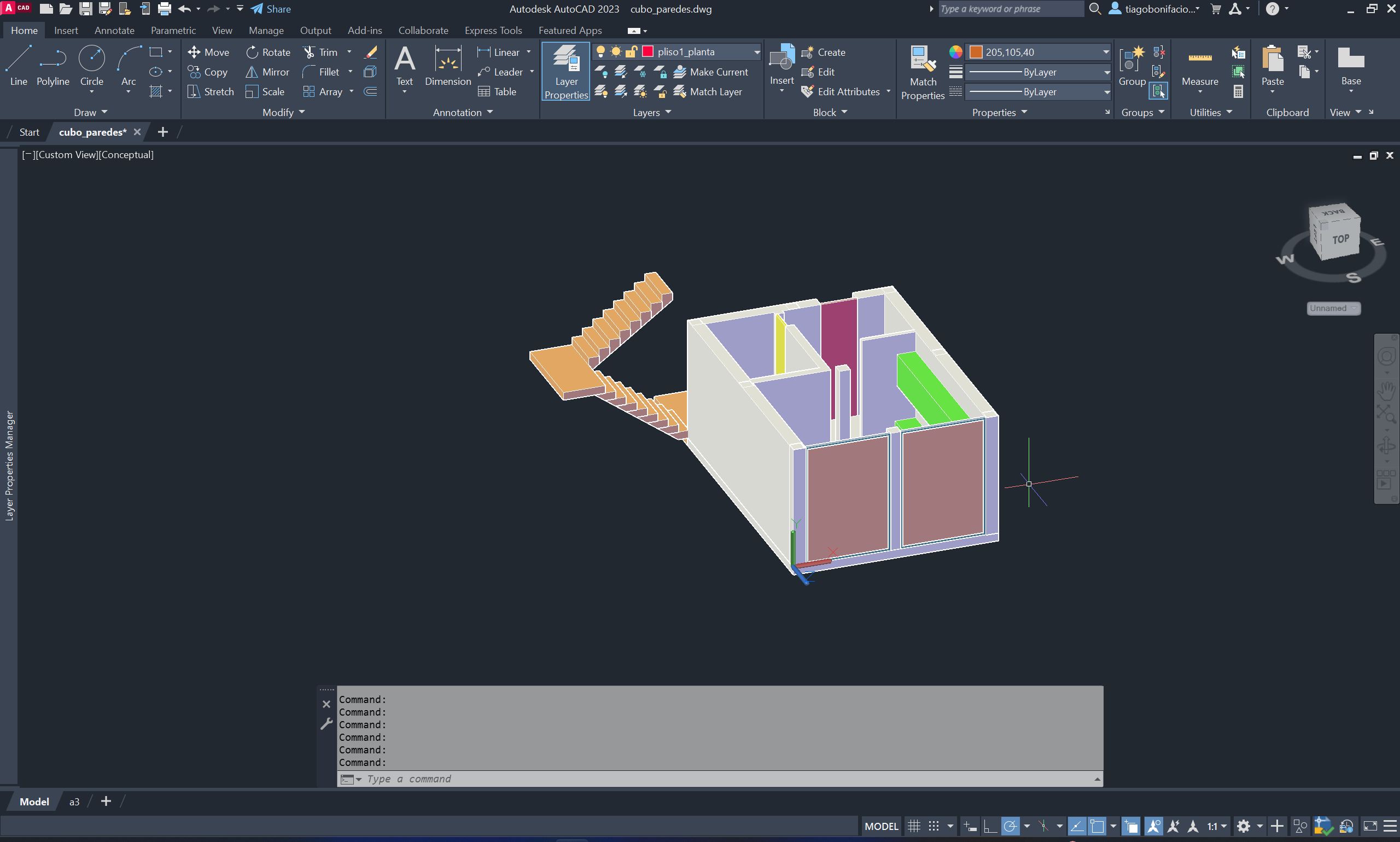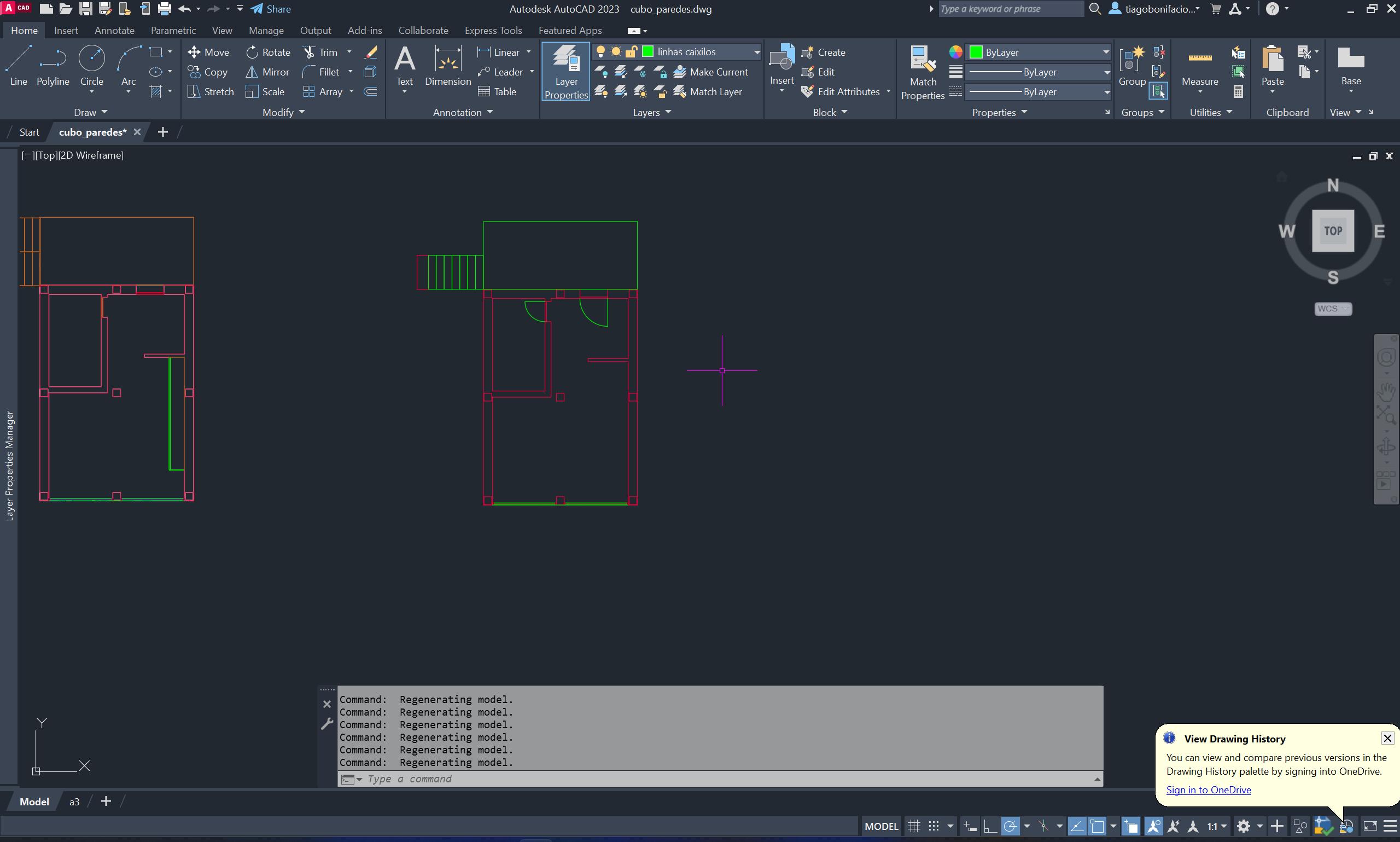 Nesta aula desenvolvemos plantas e alçados do T0 utilizando o comando Section para cortes e o comando Solprof (Solid Profile) para gerar as projeções dos alçados em 2D. Realizamos revisões da matéria para a frequência, consolidando conceitos práticos. Criamos ainda um exercício completo: desenhamos um quadrado, aplicamos Region, subtraímos formas com Subtract, aplicamos Extrude para criar o volume 3D e finalizamos inserindo portas e janelas tridimensionais, integrando todos os comandos aprendidos.