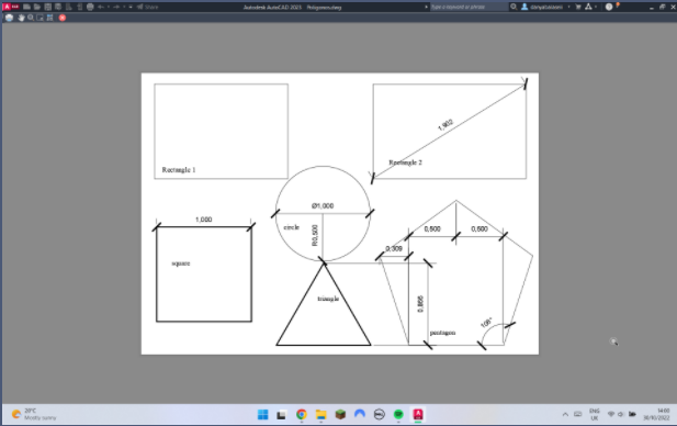- Organização das formas do exercício da aula anterior na escala 1:10 e descrição das formas no layout criado.