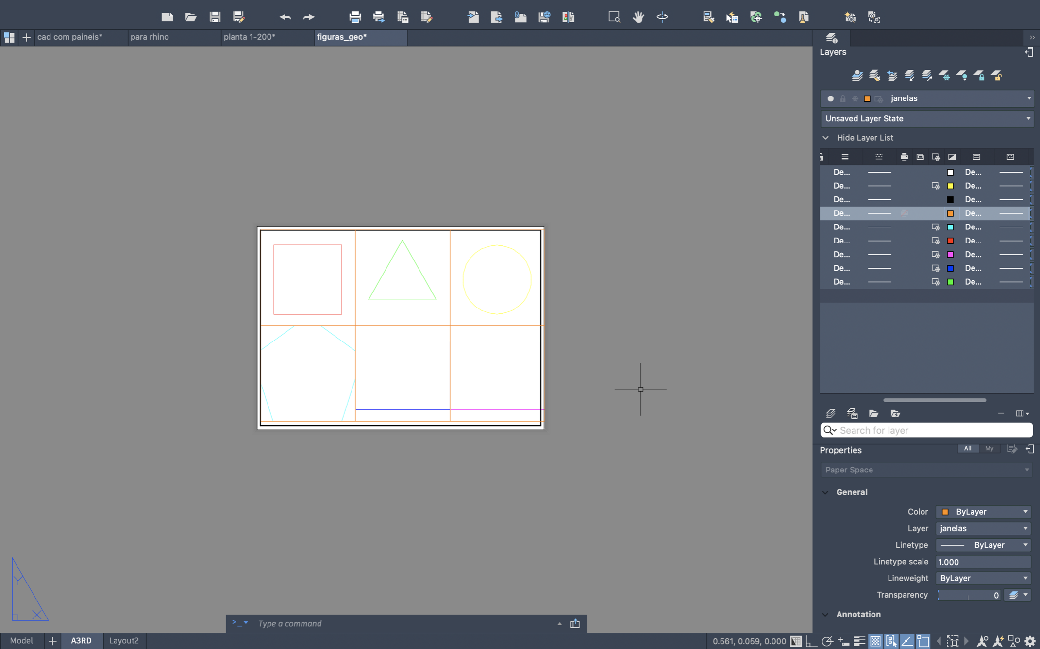 - Comandos zoom, extend e transição Paperspace / Modelspace;