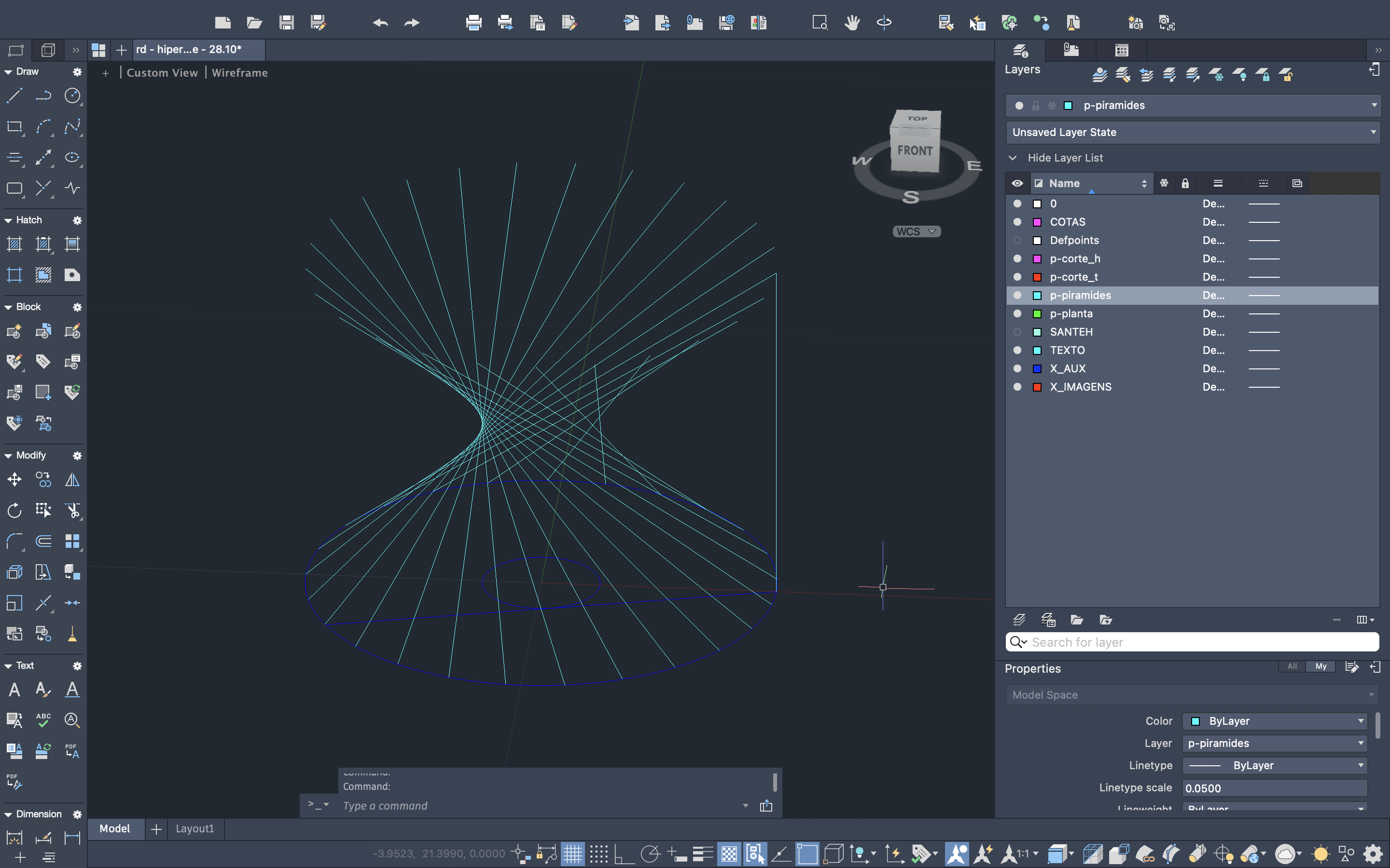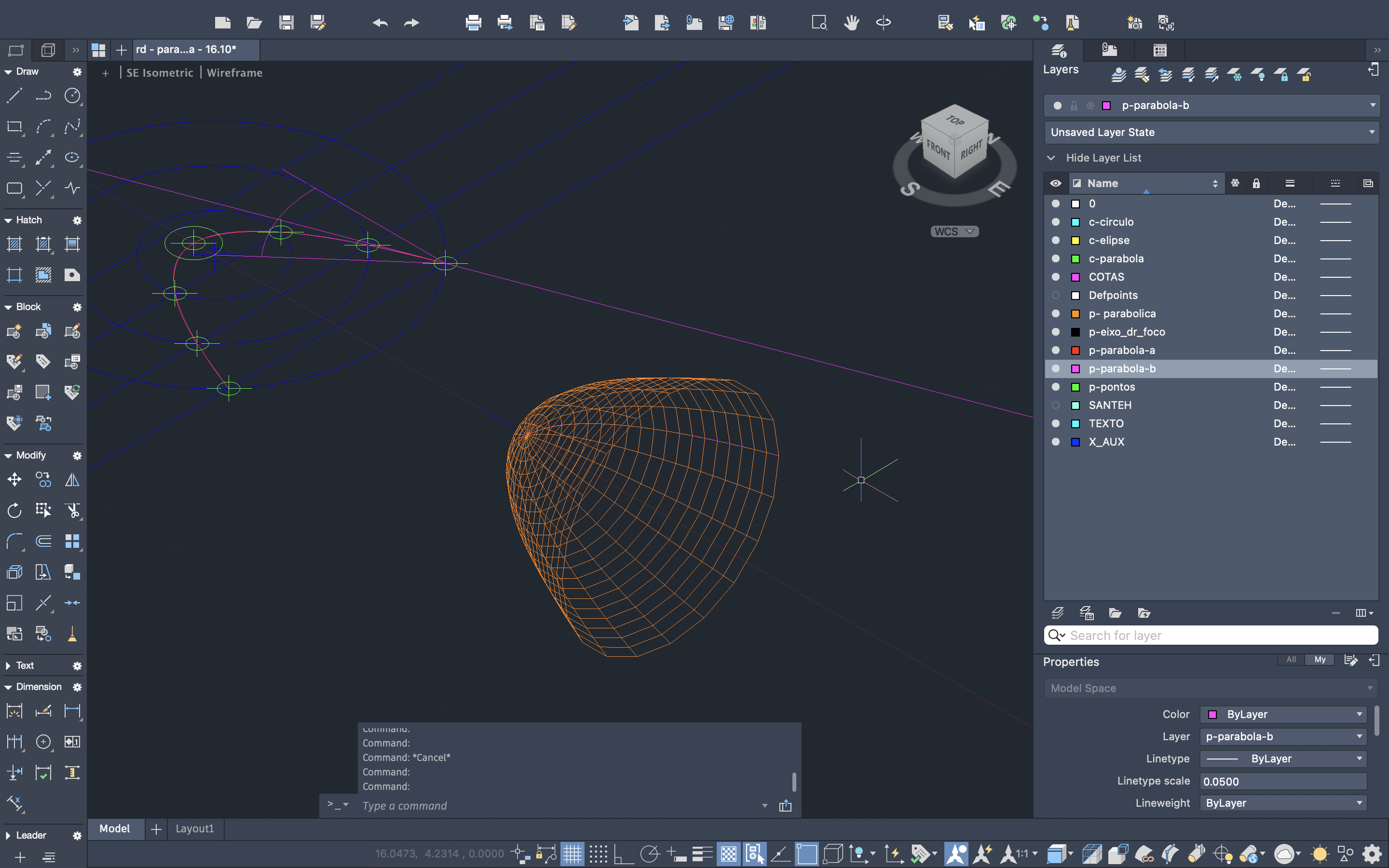 - layer "paraboal" | xl h | ponto na base do cone | ucs | x opsto outro cone | y nea to -