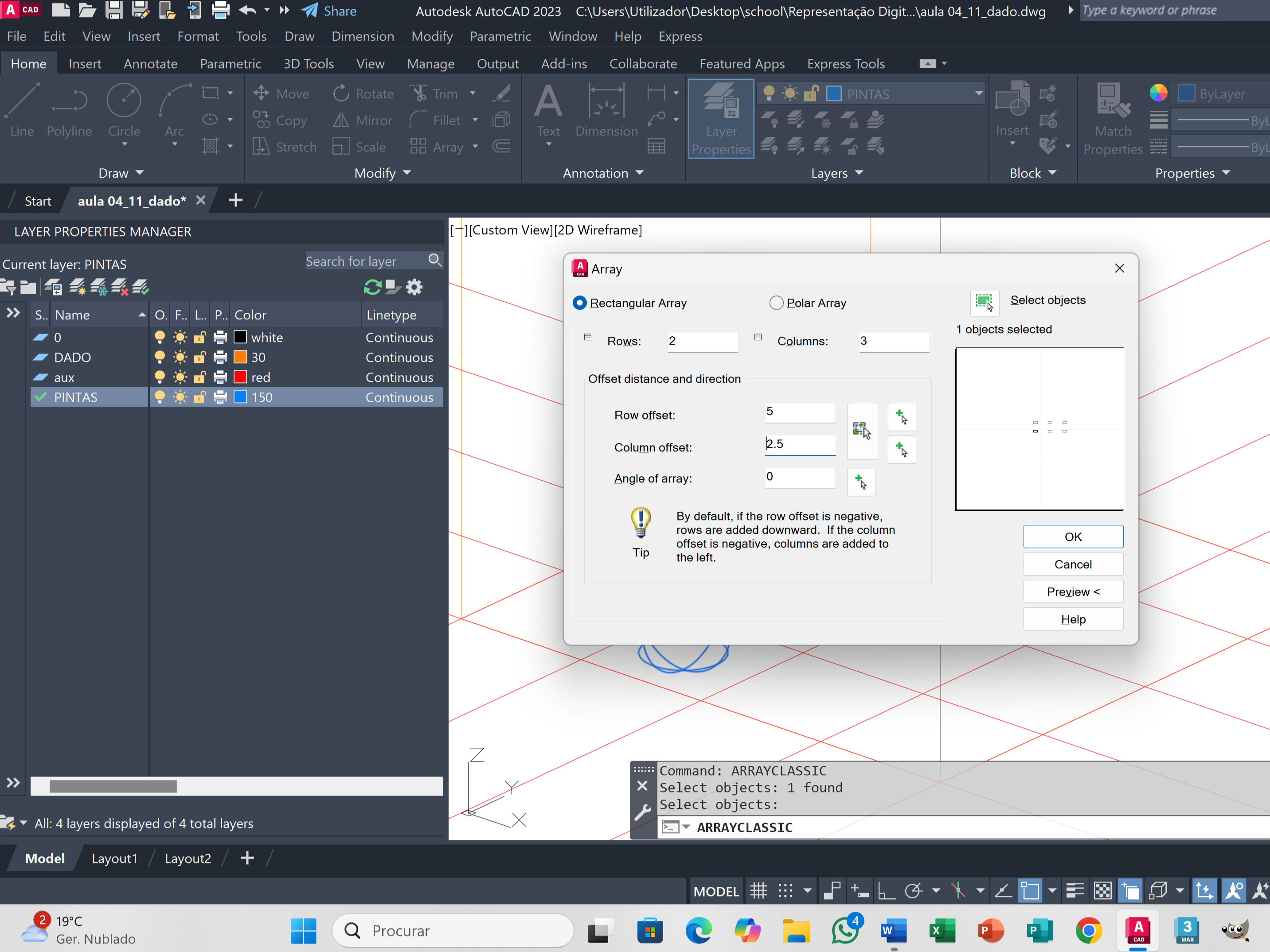 Na aula, procedemos à limpeza e reorganização a macro no AutoCad com o objetivo de otimizar o modelo
