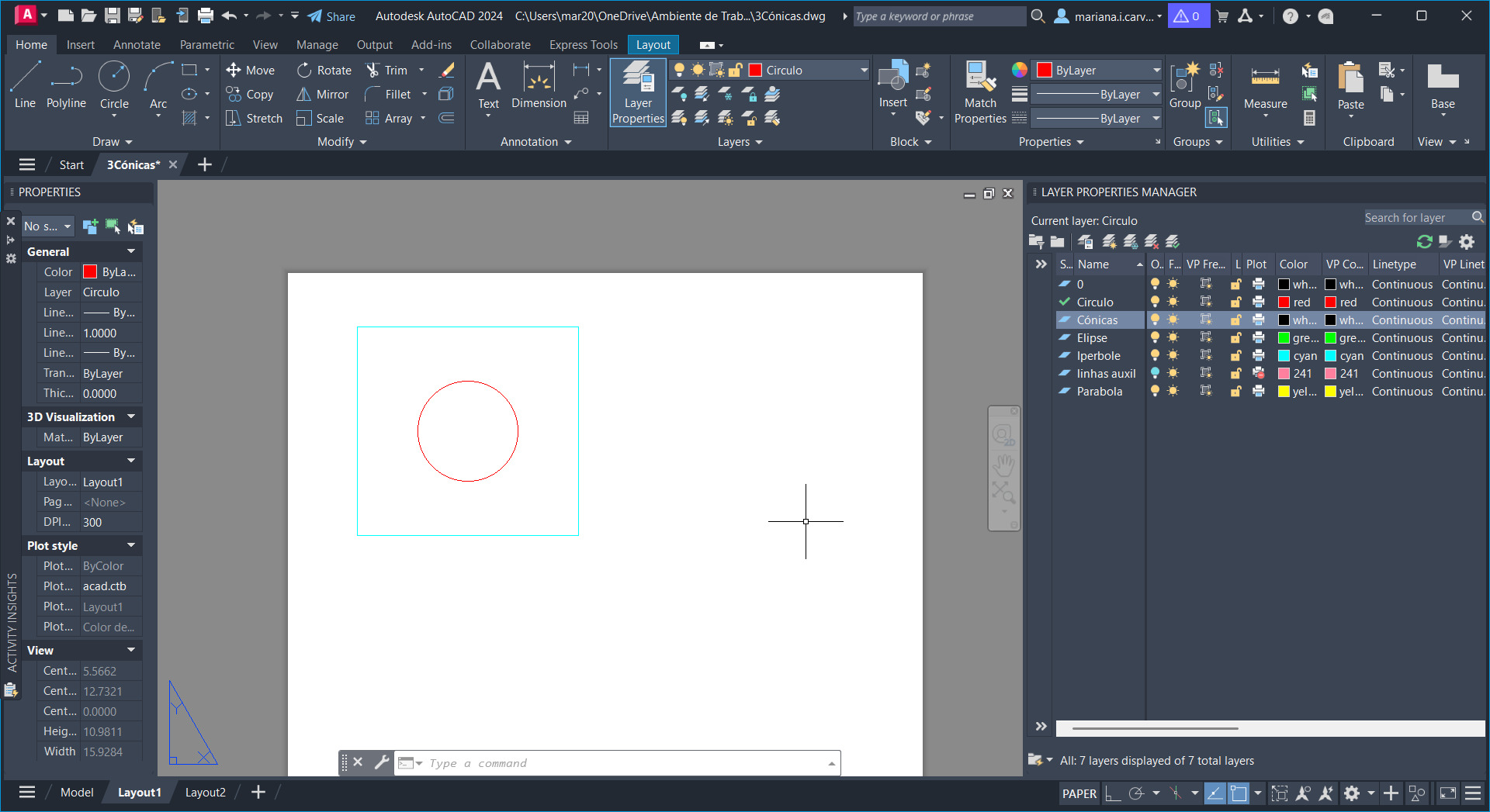 Trabalho em layout, e de layers e suas invisibilidades. Criação de uma janela através de Mview e gestão de vista na mesma com o comando Plan.