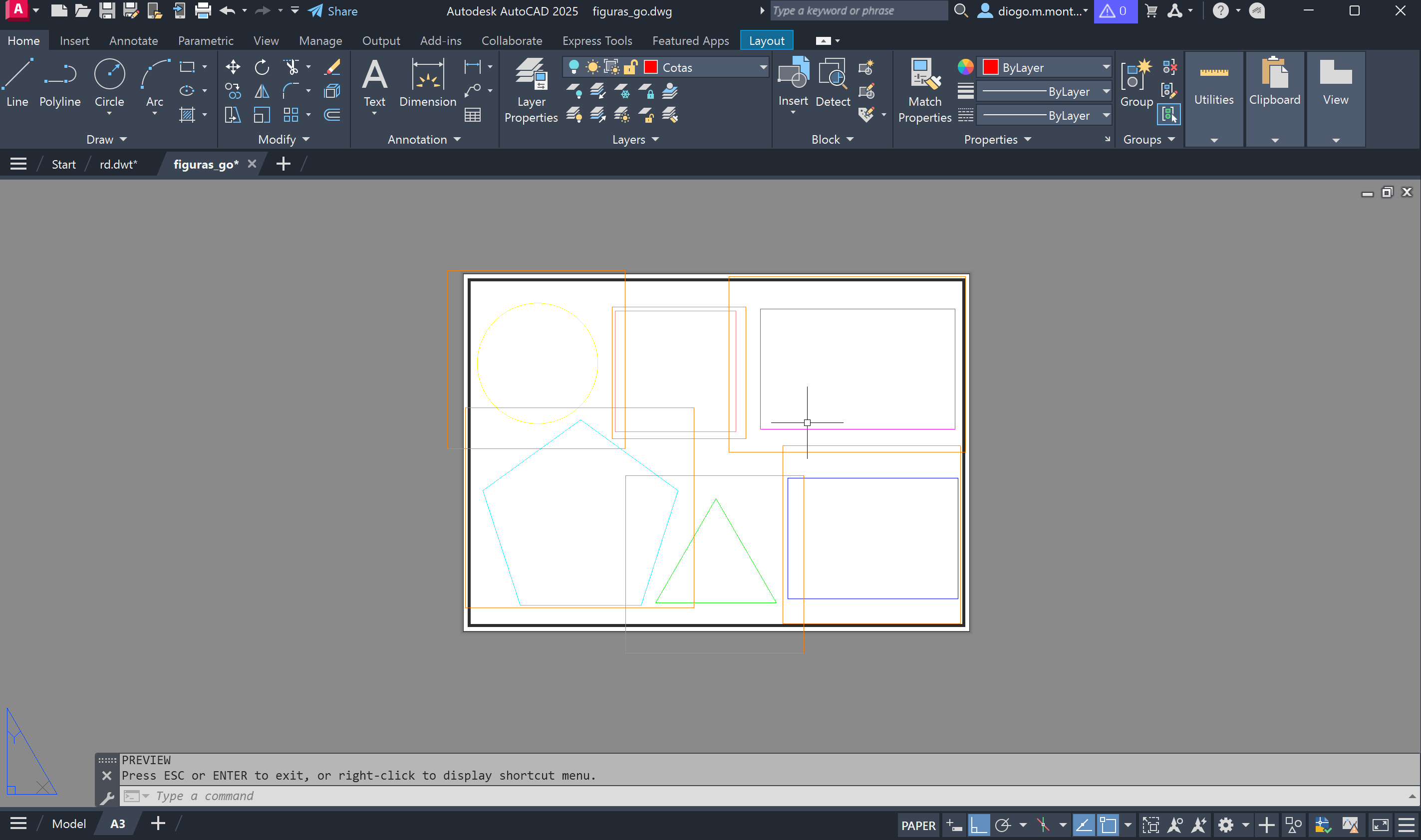 Fim do exercício das figuras geométricas com a alteração das propriedades no modo PLOT, para simular-mos a função de impressão.