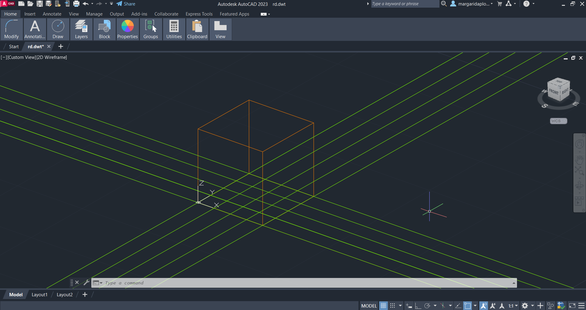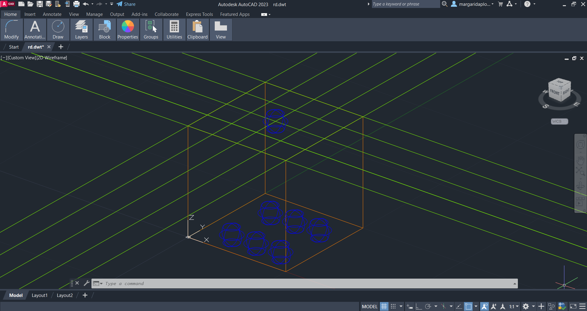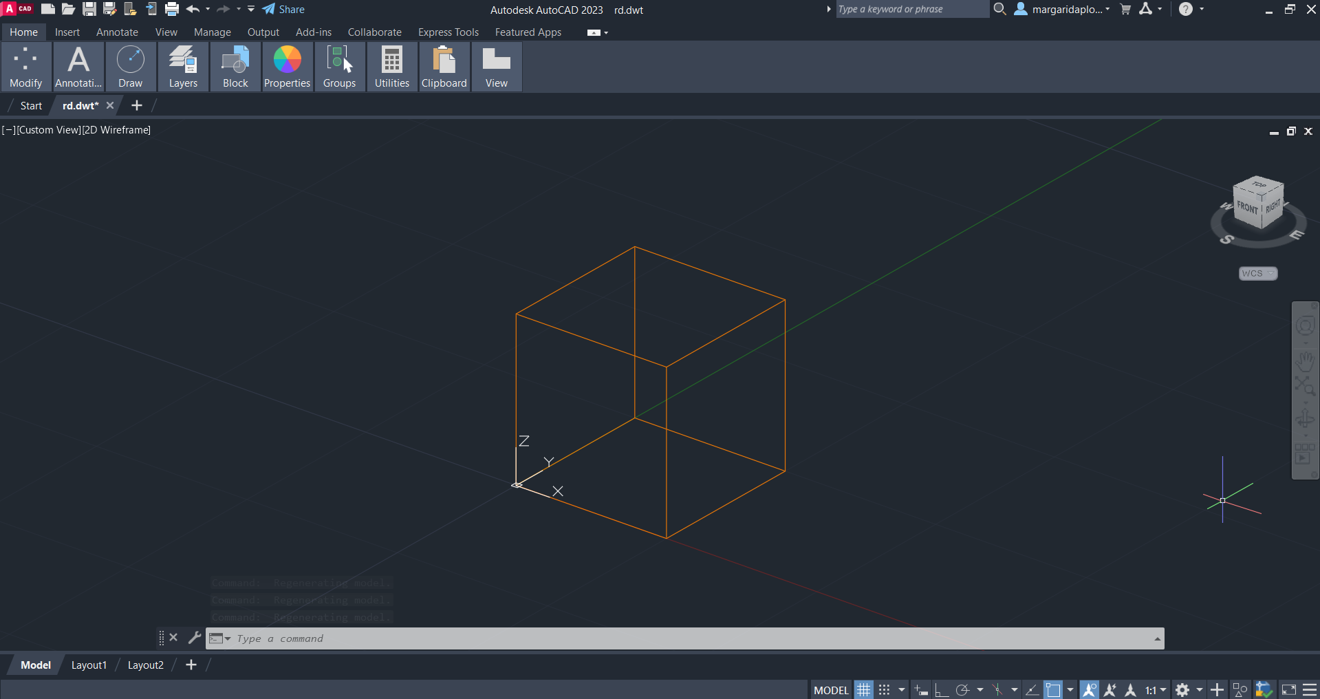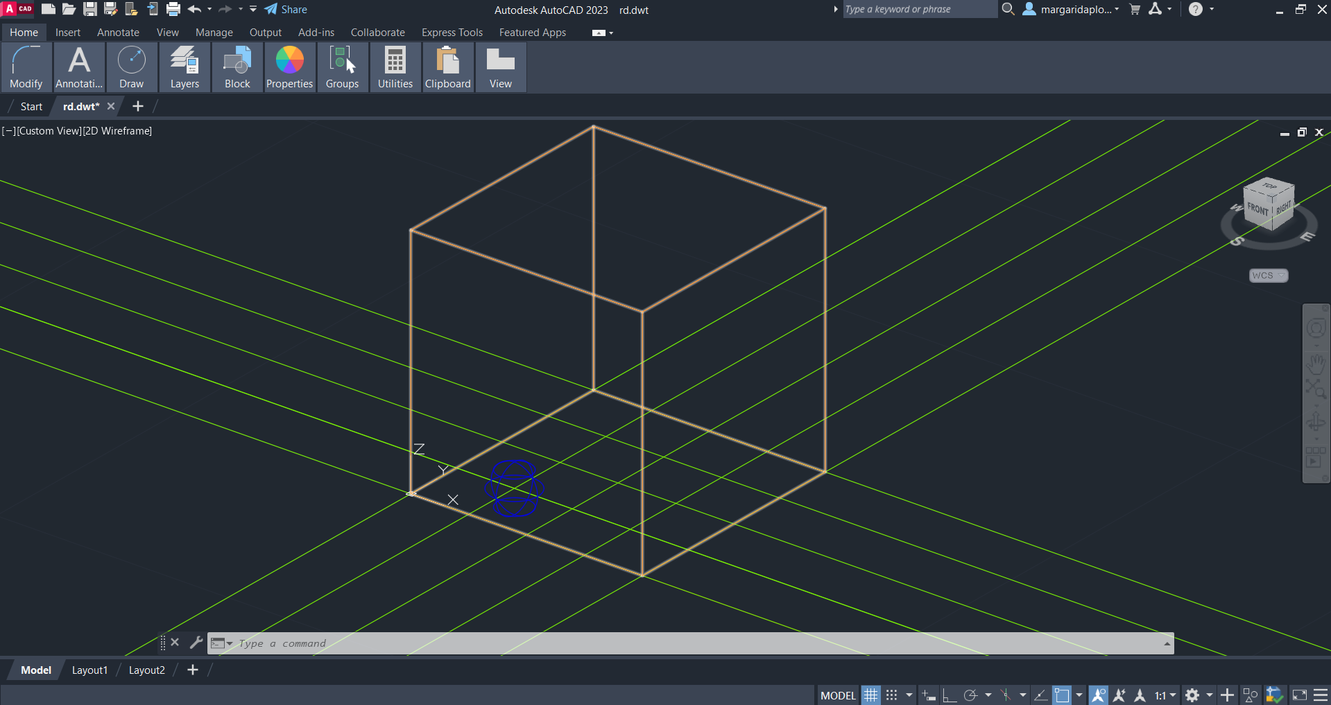 Início de um novo exercício de criação de um dado, num novo ficheiro AutoCAD.