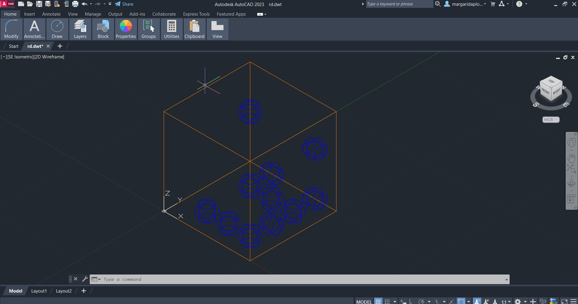 União de todas as esferas e extração das mesmas do cubo inicial, a partir dos comandos "UNION" e "SUBTRACT".