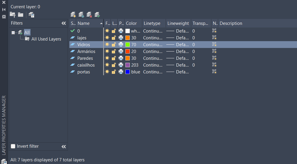 Importação de um novo comando T0, através do comando "APPLOAD". Criação de layers, cada uma com uma cor associada ao seu conteúdo.