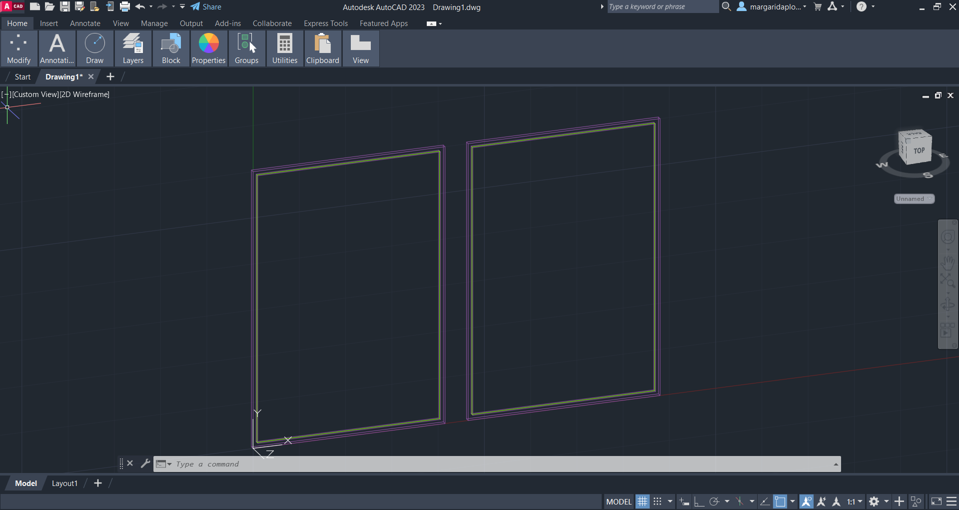 Criação dos vidros do T0, a partir dos comandos: "UCS", "RECTANGLE" e "REGION".