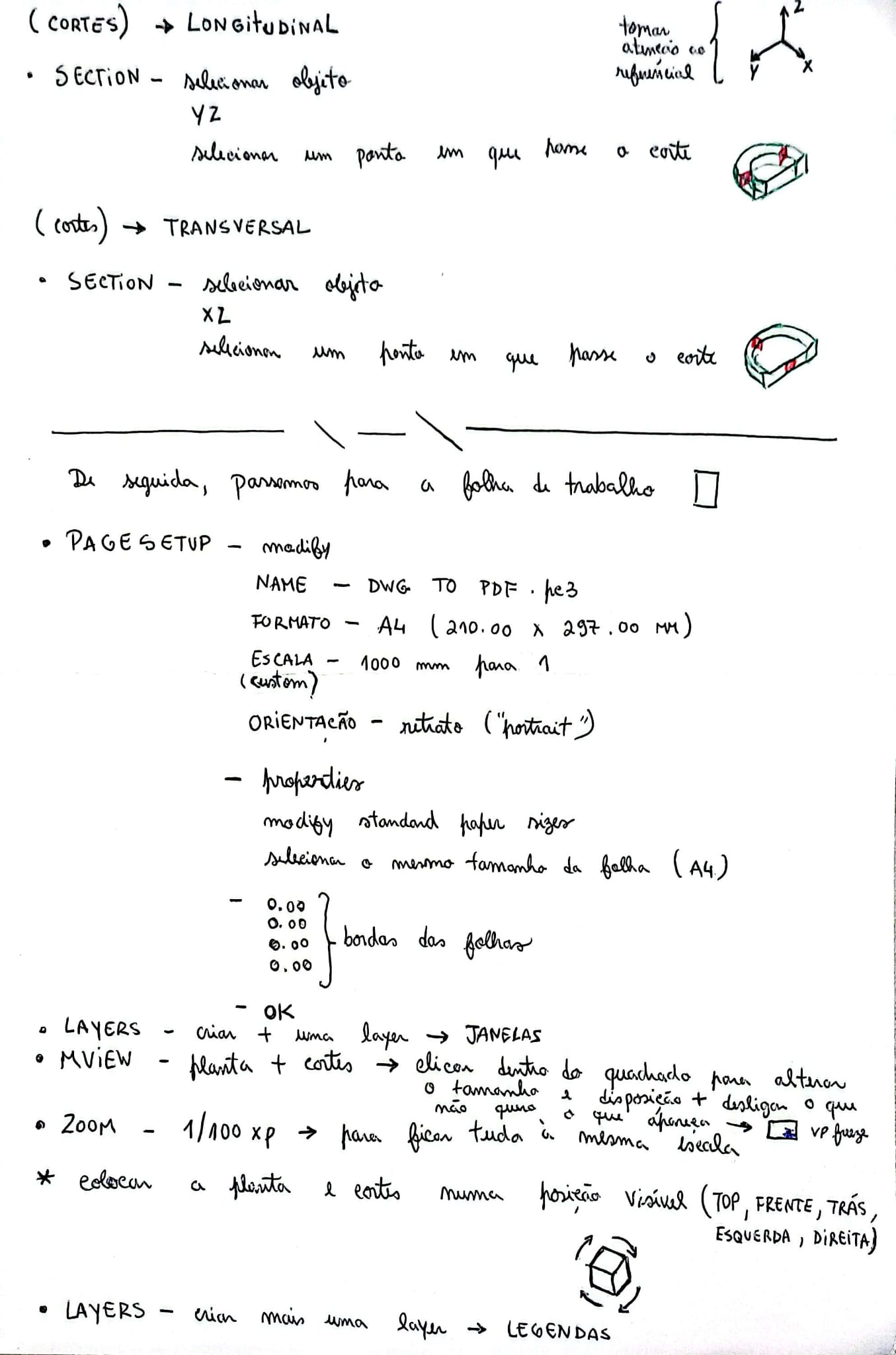 Neste exercício utilizámos diversos comandos como por exemplo: "UNITS", "XLINE", "SCALE", "MOVE", "ROTATE", "EXTRUDE", "PLINE", "UNION" e "SECTION".