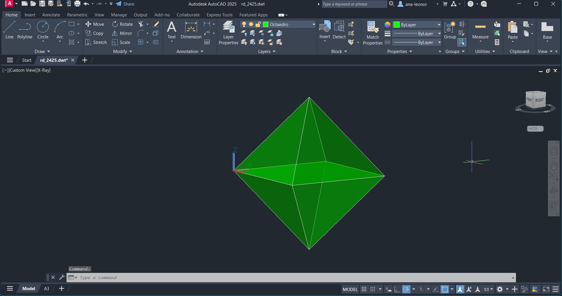 Inicio do trabalho sobre a Layer "Cubo". Introdução a novos Comandos como o REGION e o UCS.