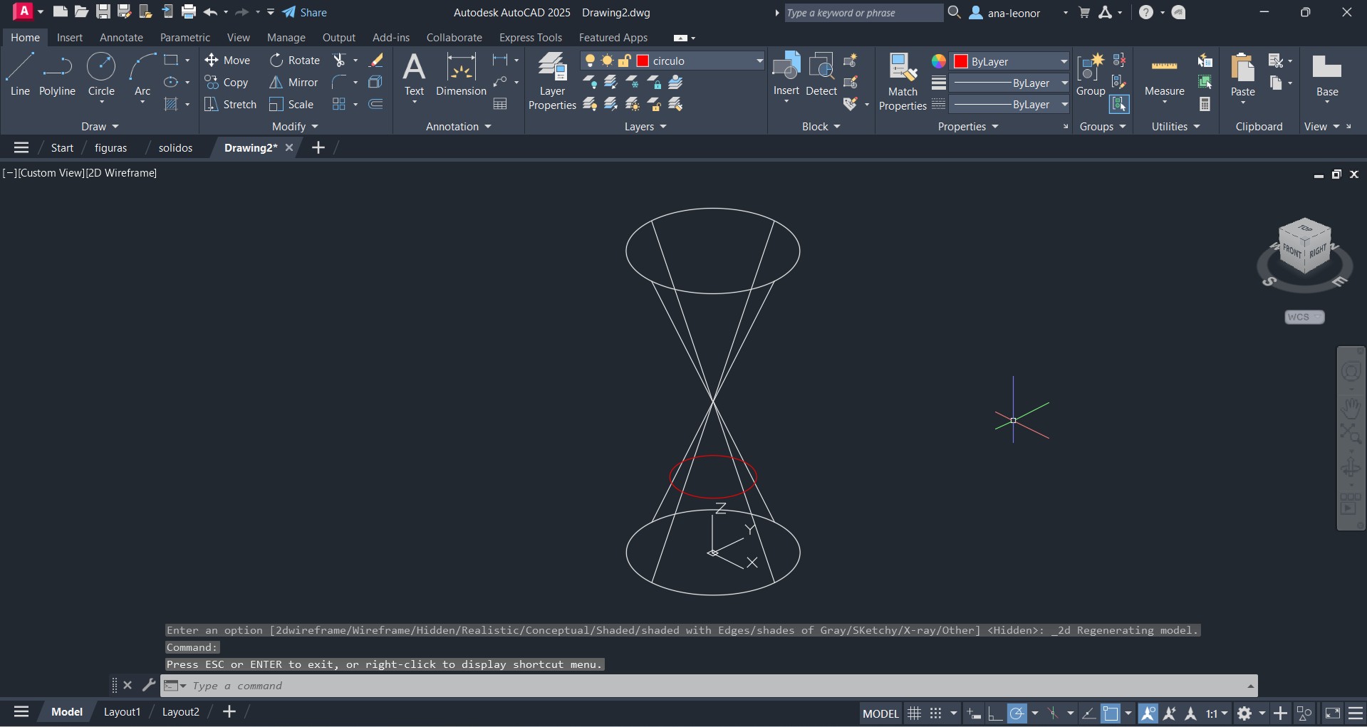 Introdução a novos Comandos como o CONE (ferramenta usada para criar o cone) e SECTION (vista em corte de um objeto tridiomensional).