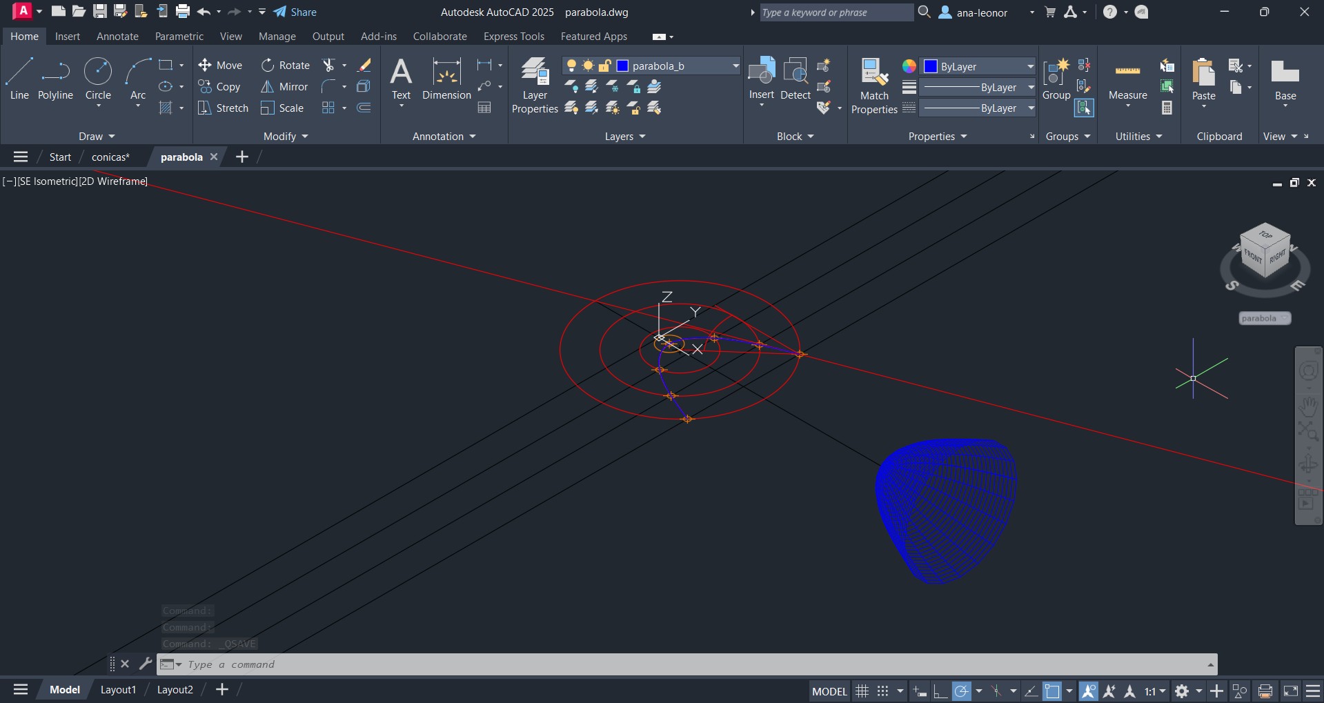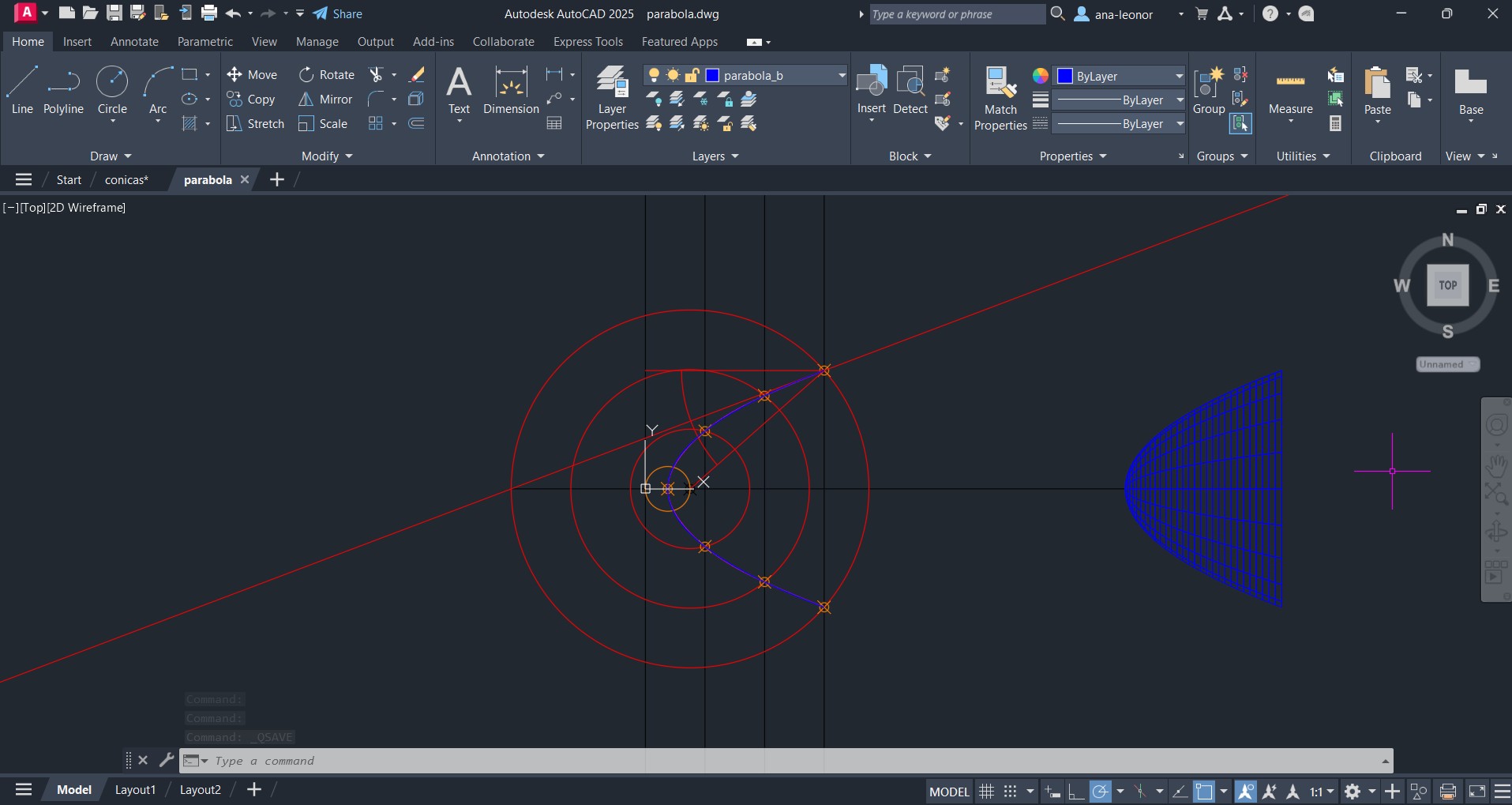 Continuação do exercício, trabalhando agora sobre a layer "Parábola".