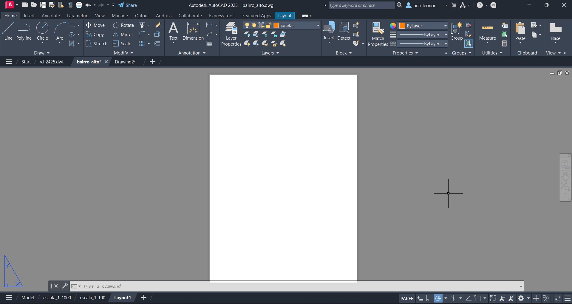 Alteração da folha de layout para o tamanho A0,através do comando PAGESETUP, de modo a incorporar corretamente a planta estudada.