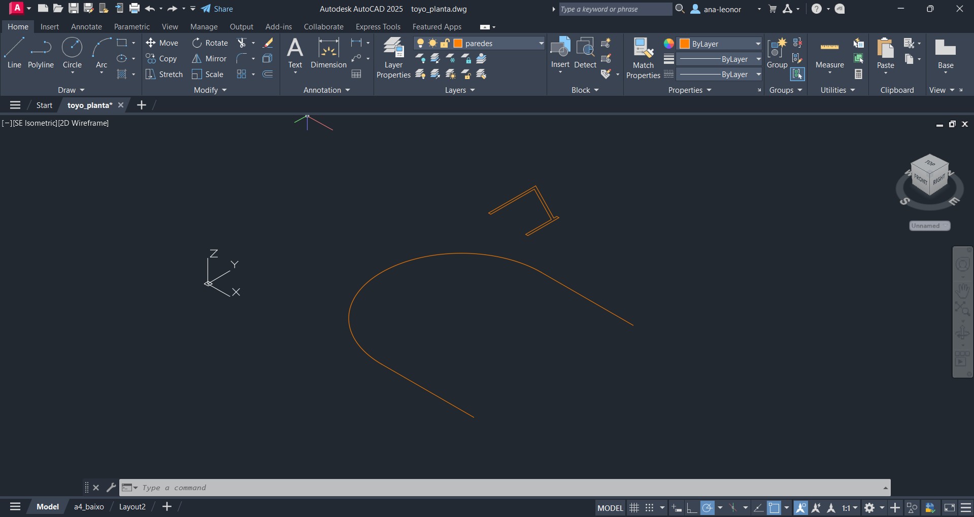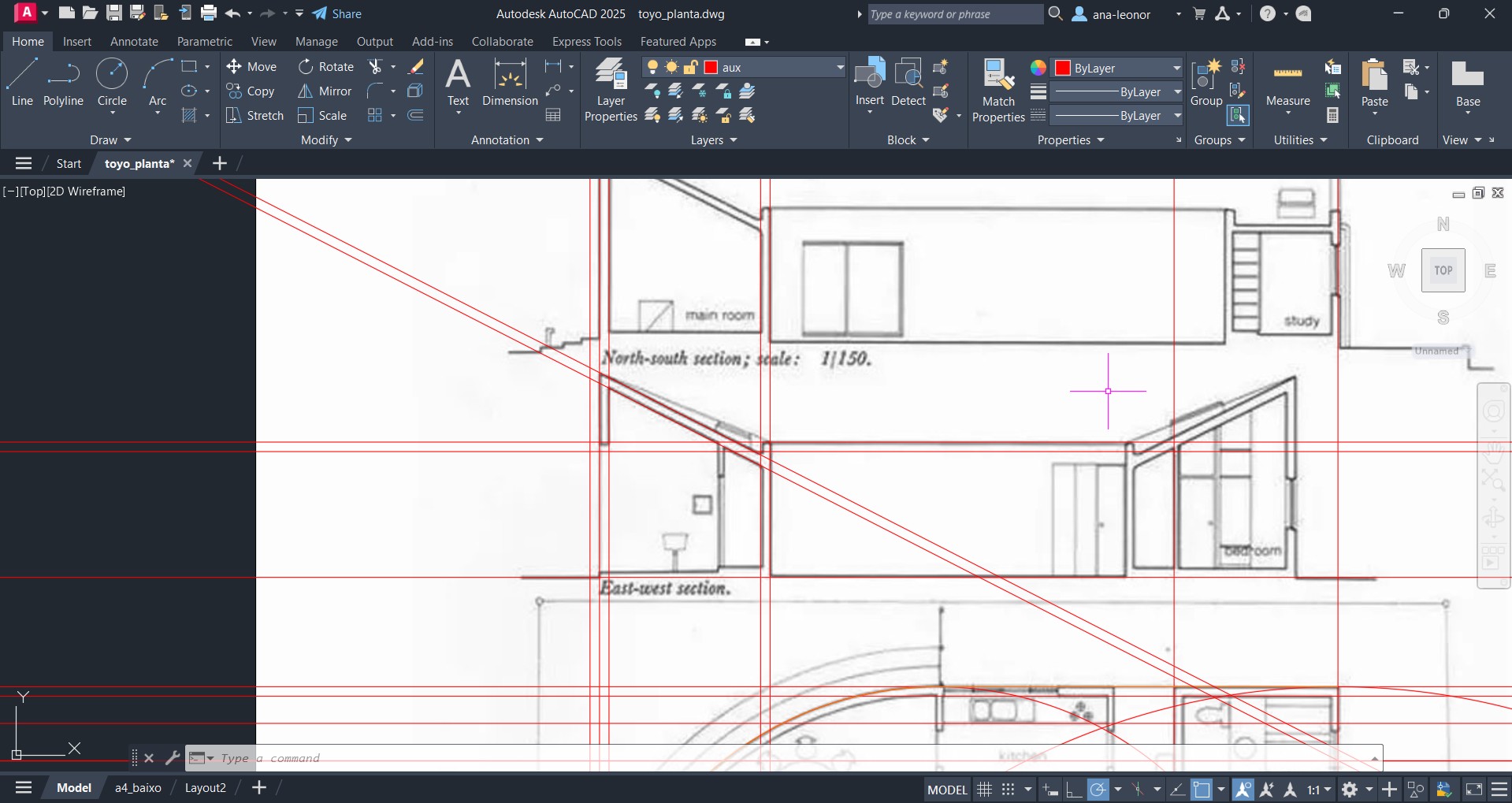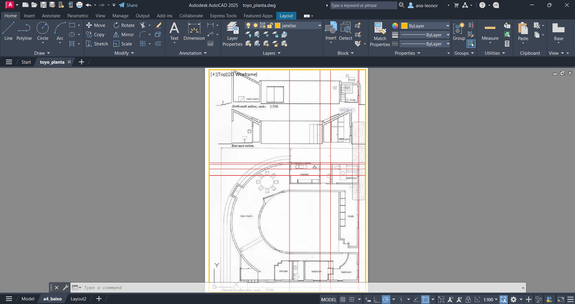Continuação do estudo da planta a Toyo Ito House, escalando a sua forma, através do comando SCALE,de modo a que as medidas correspodam à medida real.
