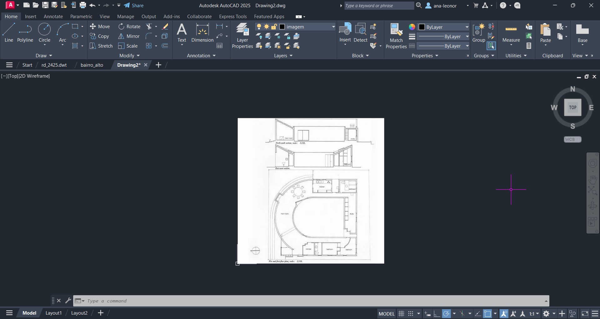 Introdução da planta numa nova página do Autocad,através da ferramenta IMAGEATTACH (ferramenta usada para inserir imagens externas).