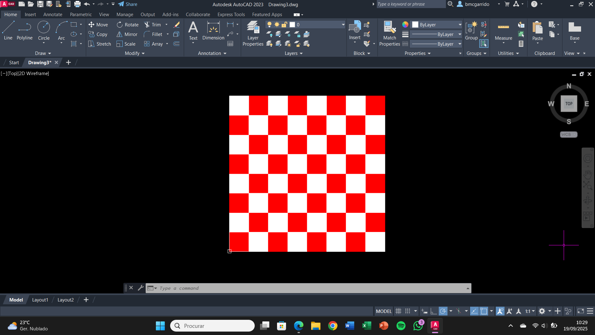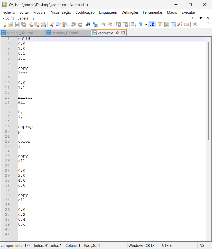 Primeiro contacto com o software através da criação de um tabuleiro de xadrez (usando autocad e com o mesmo método através do Notedpad++).