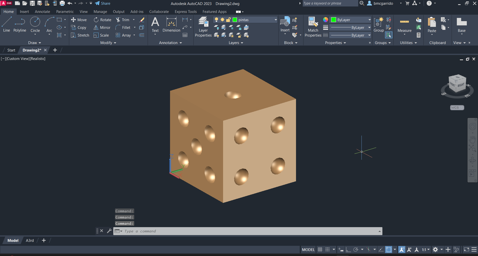Ainda nesta semana constuímos um dado, retirando esferas e fazendo as arestas curvas.