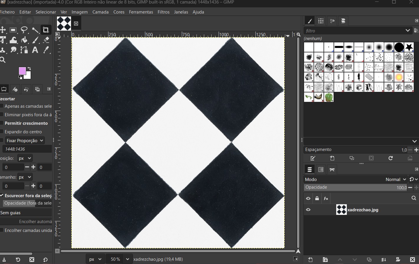 Uso do programa GIMP para editar imagem que servirá de pavimento. Colocação do mesmo na layer "chao".