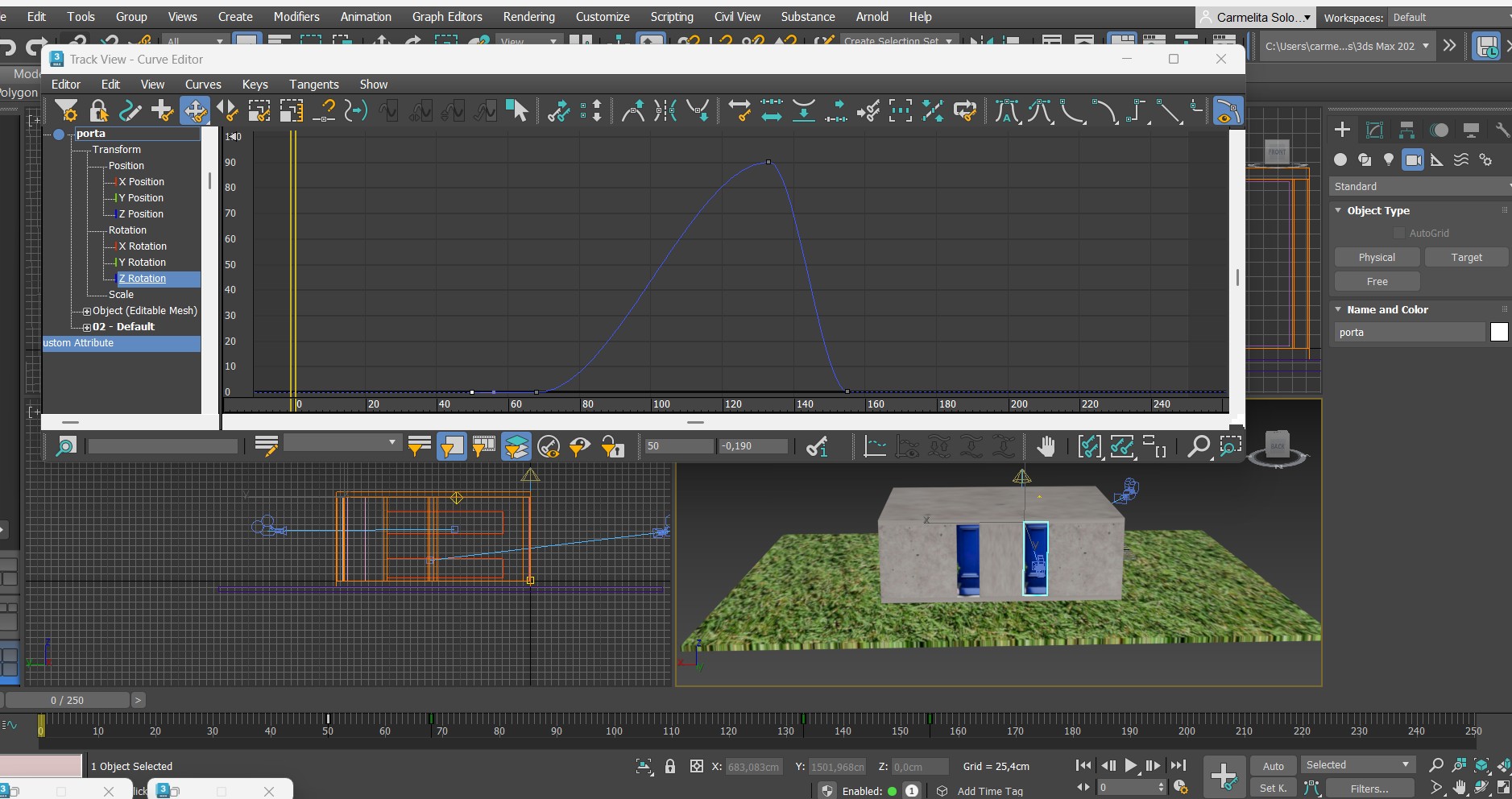 Fizemos configurações no elemento da porta, de modo a que a mesma fizesse uma rotação de abertura.