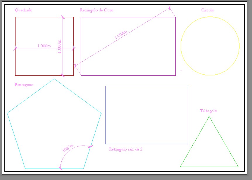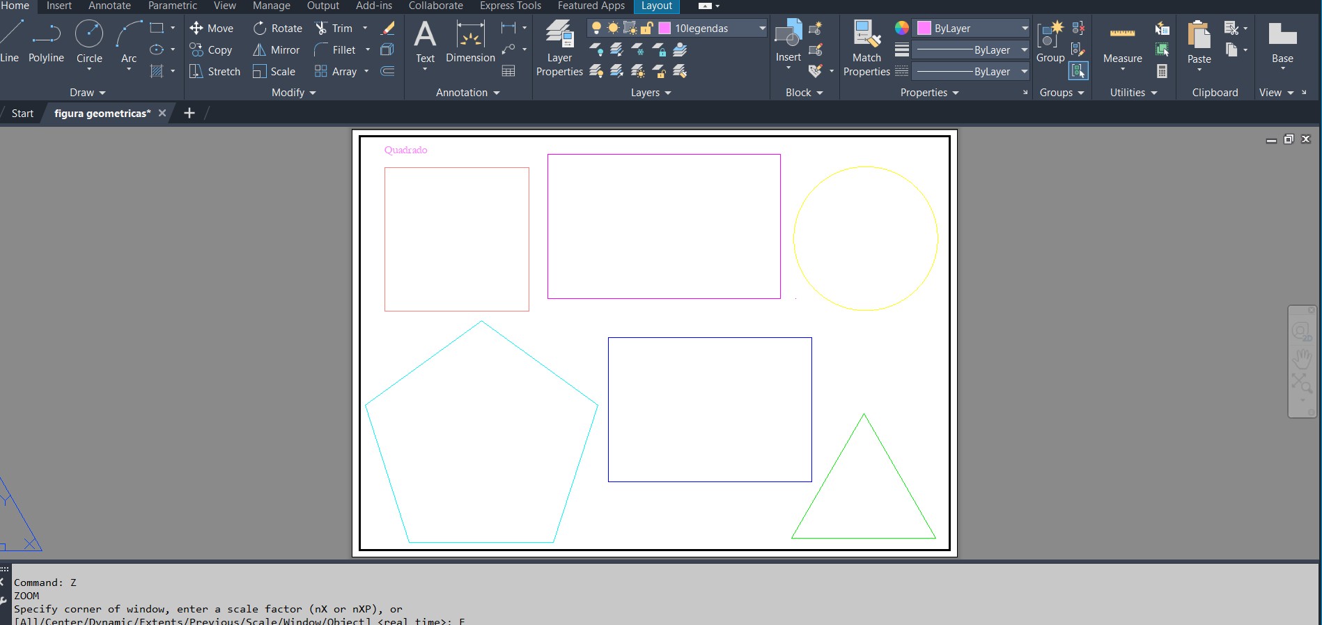Continuação e conclusão do exercício no AutoCad: Criação de 6 polígonos dentro de diferentes janelas com respetiva legenda e medida.