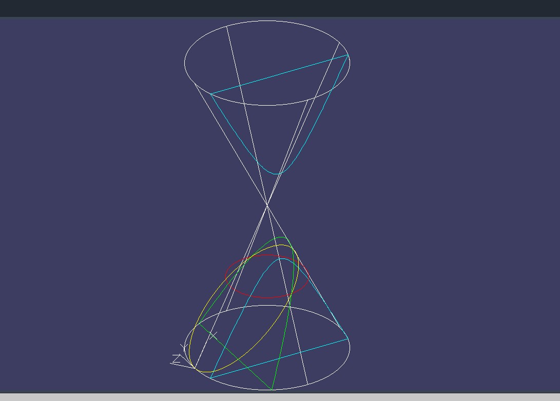 Fizemos um corte, uma parábola, uma elipse e uma hipérbole.