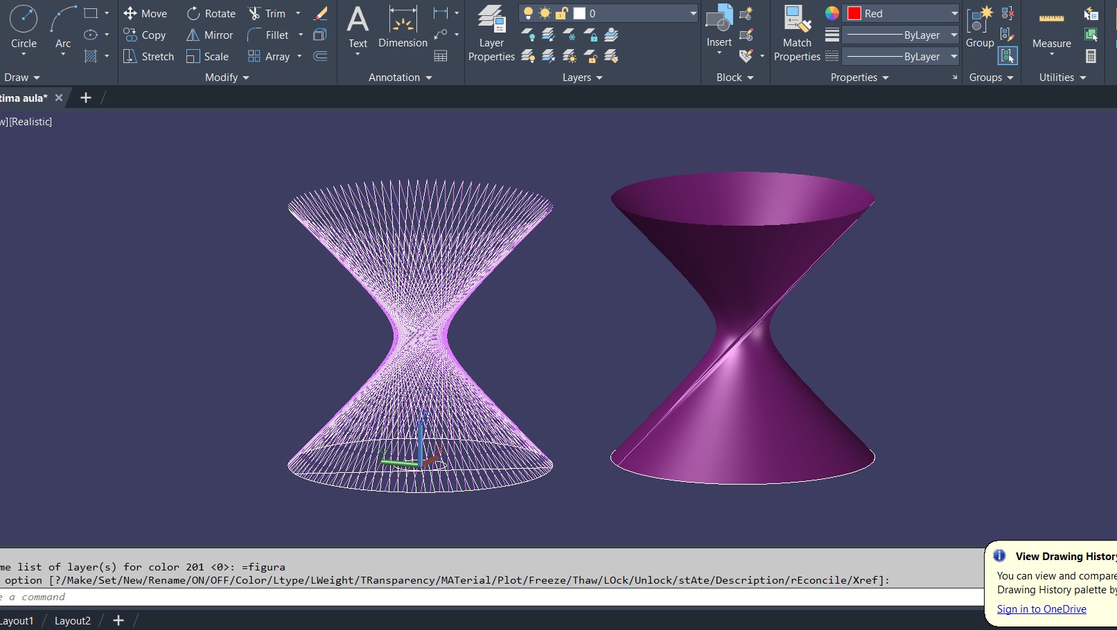 Cópia da figura para o lado e criação de um hiperboloide branco e vermelho, a partir de cada uma das geratrizes.