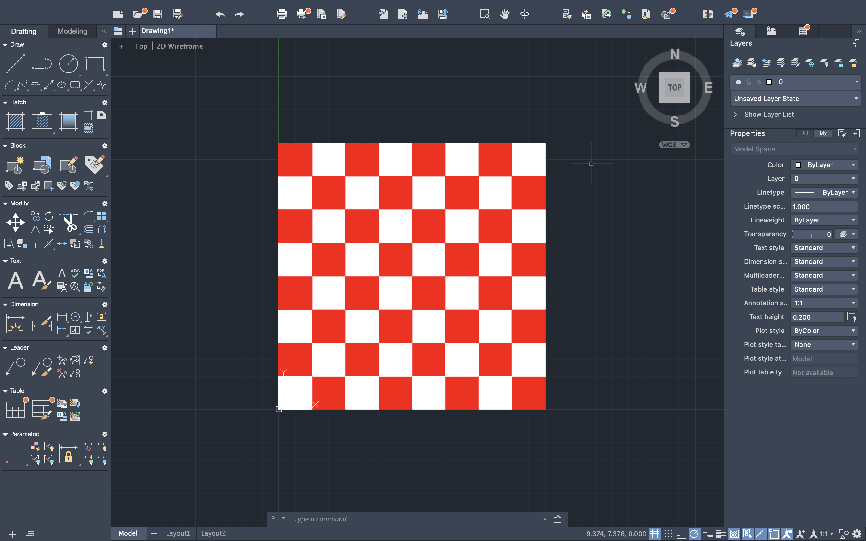 Primeira aula de AutoCad, onde realizamos um tabuleiro de xadrez a partir dos segunites comandos: