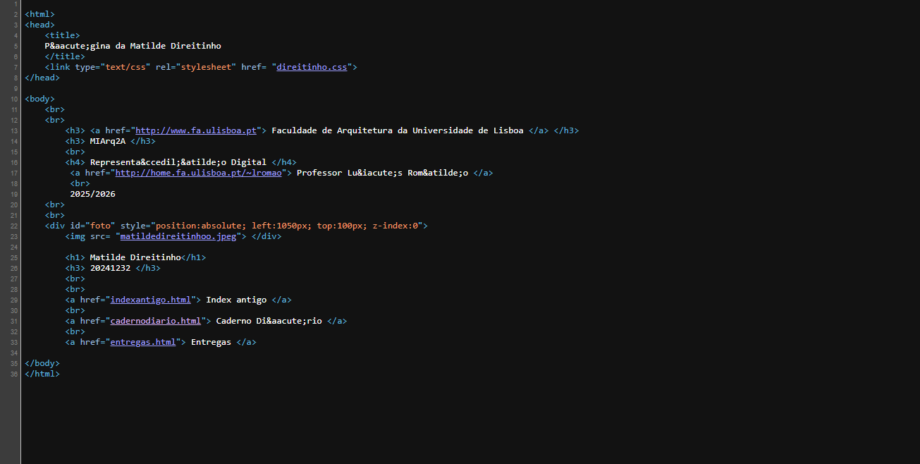 Continuação da criação da página pessoal em formato HTML, com a ajuda do programa Phoenix Code.