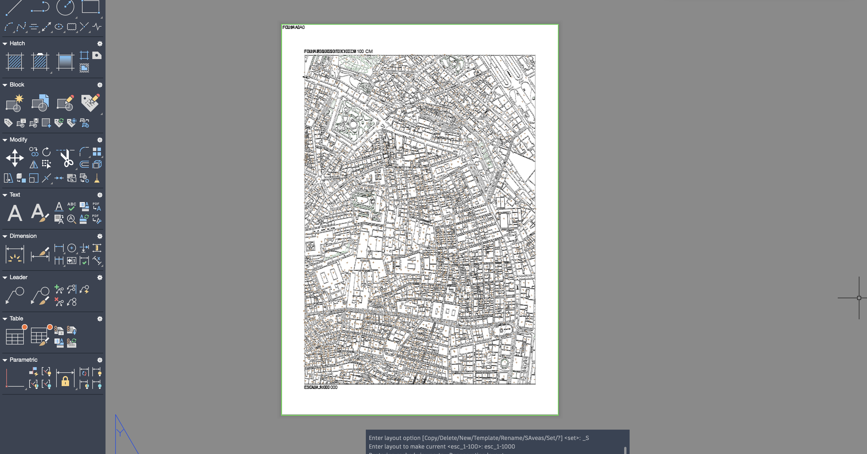 Criação de dois layouts A0, onde se escalou corretamente a planta para as escalas 1/100 e 1/1000.