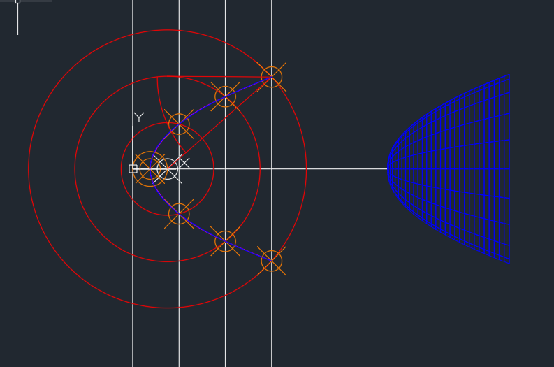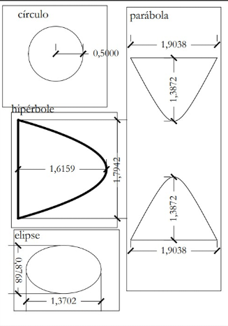 Execução de exercício com construção de duas parábolas, recorrendo a linhas auxiliares para determinar pontos e obter o traçado correto das parábolas