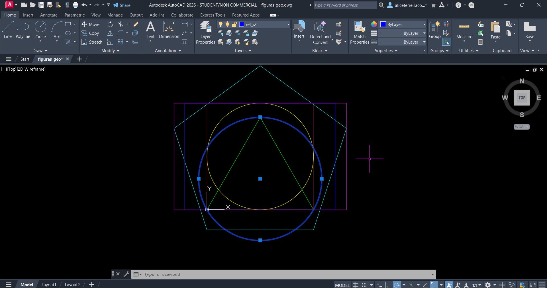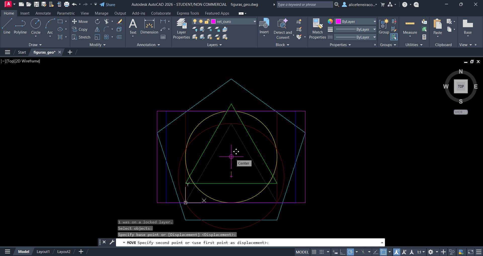 Continuação da construção das figuras da aula passada. O exercício final contém as figuras todas centradas pelo centro do círculo amarelo.
