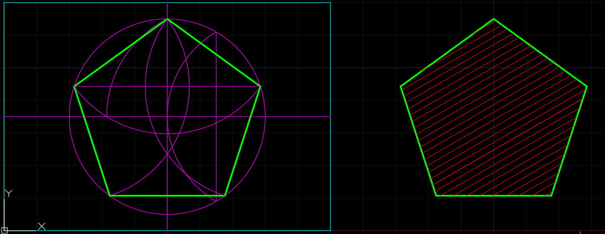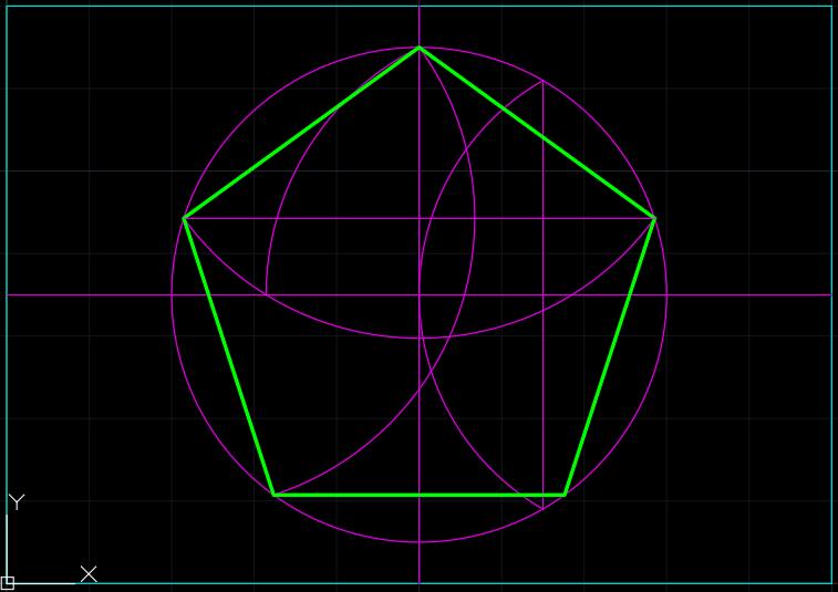 - II - Sobre o template criado desenhe um pentágono rigoroso com construção geométrica como se