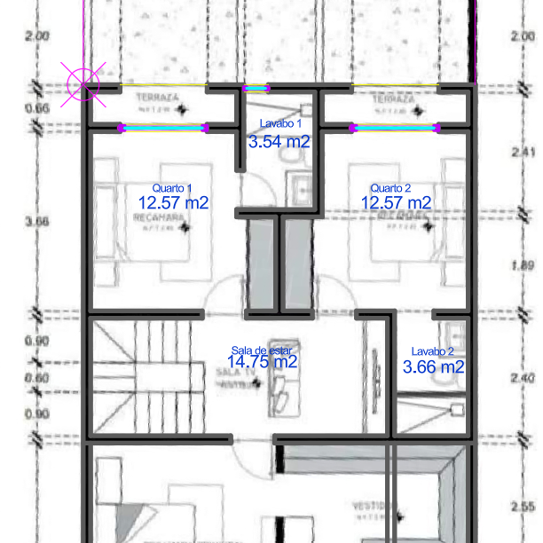 Pretende-se o desenho de 2 compartimentos à sua escolha seja feito sobre a imagem da planta dada