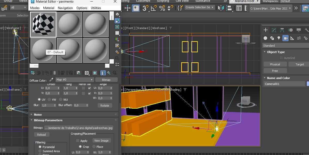 e MATERIAL EDITOR (ferramenta que serve de painel de criação e controlo de materiais do 3ds Max).
