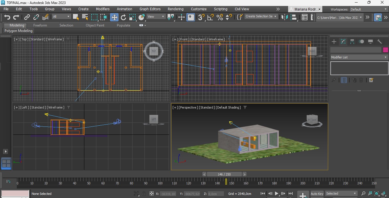 Introdução de elementos como vidros, paredes de betéo e relva, fazendo recurso a ferramentas utilizadas na aula anterior.