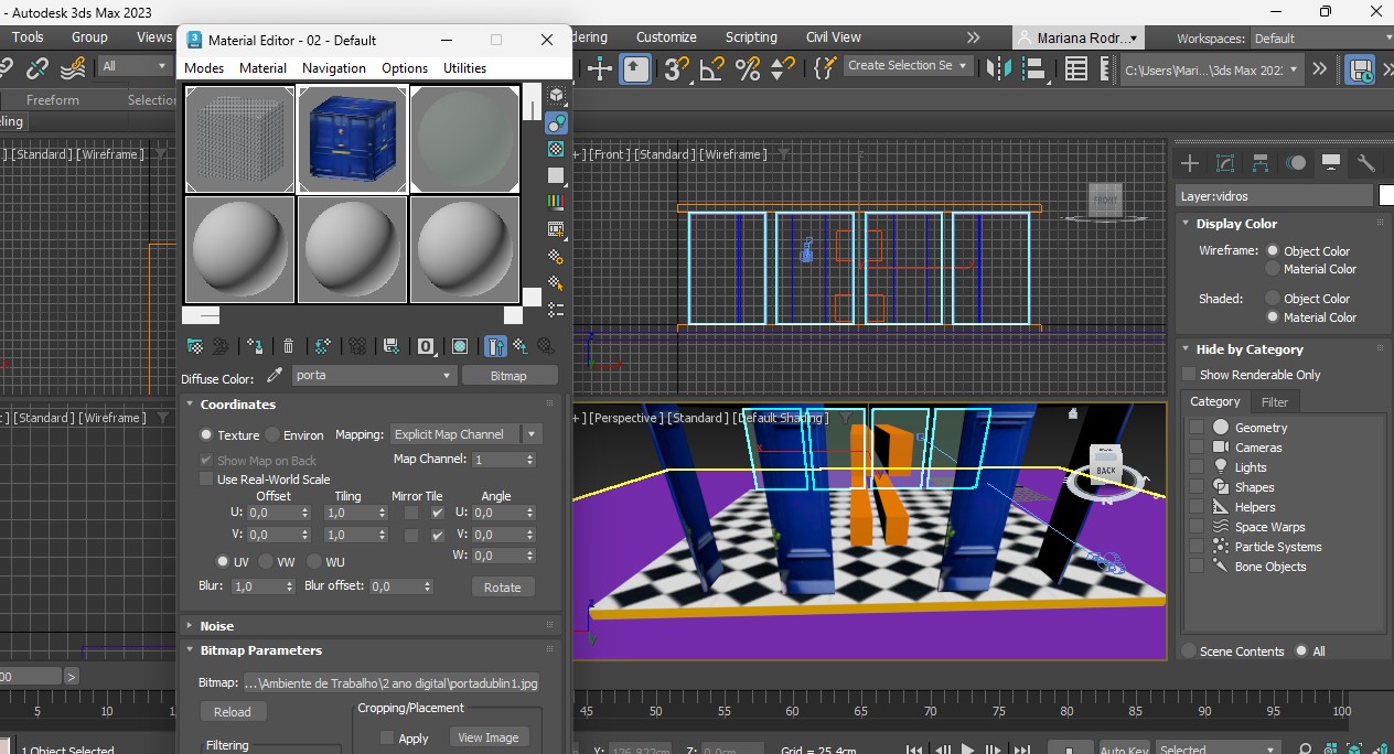 Uso novamente da ferramenta GIZMO para adequar material com a geometria da porta.