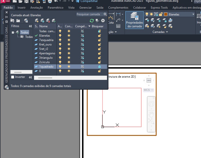 Introdução da ferramenta "Dtext" para criar legendas, exemplo "quadrado". E copiar a primeira legenda para as outras figuras alterando o nome.