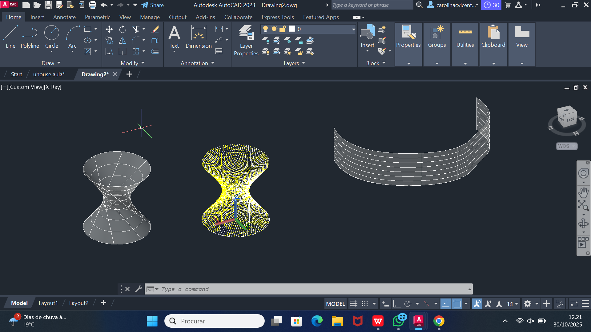 Criamos uma superfície hiperbólica com dois métodos diferentes e ainda uma superfície contínua através da geratriz da outra superfície.