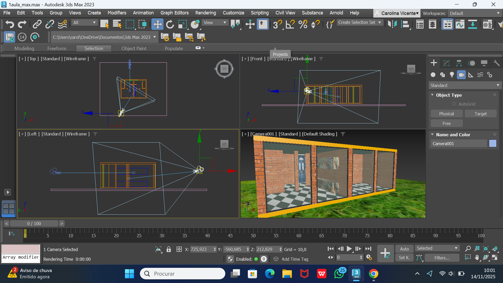 Colocamos também 2 câmaras. Uma sendo o convidado e outra um observador exterior.